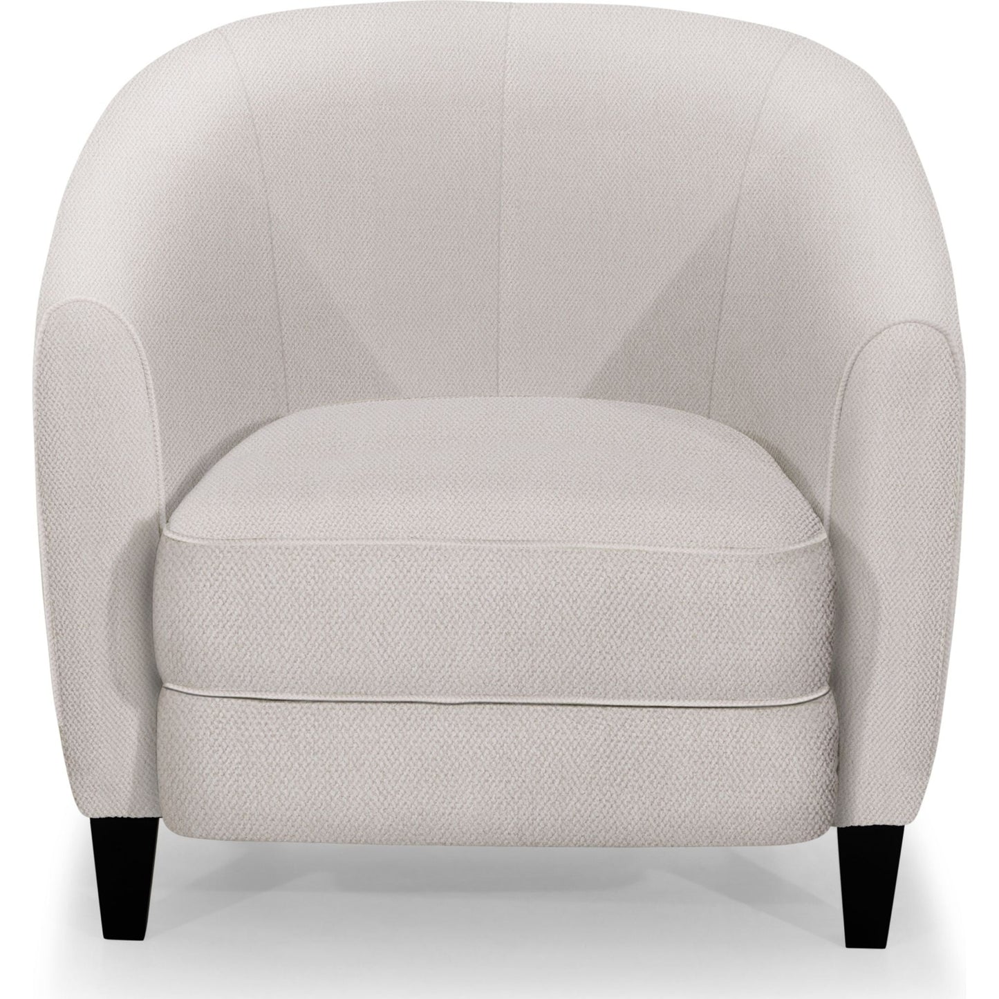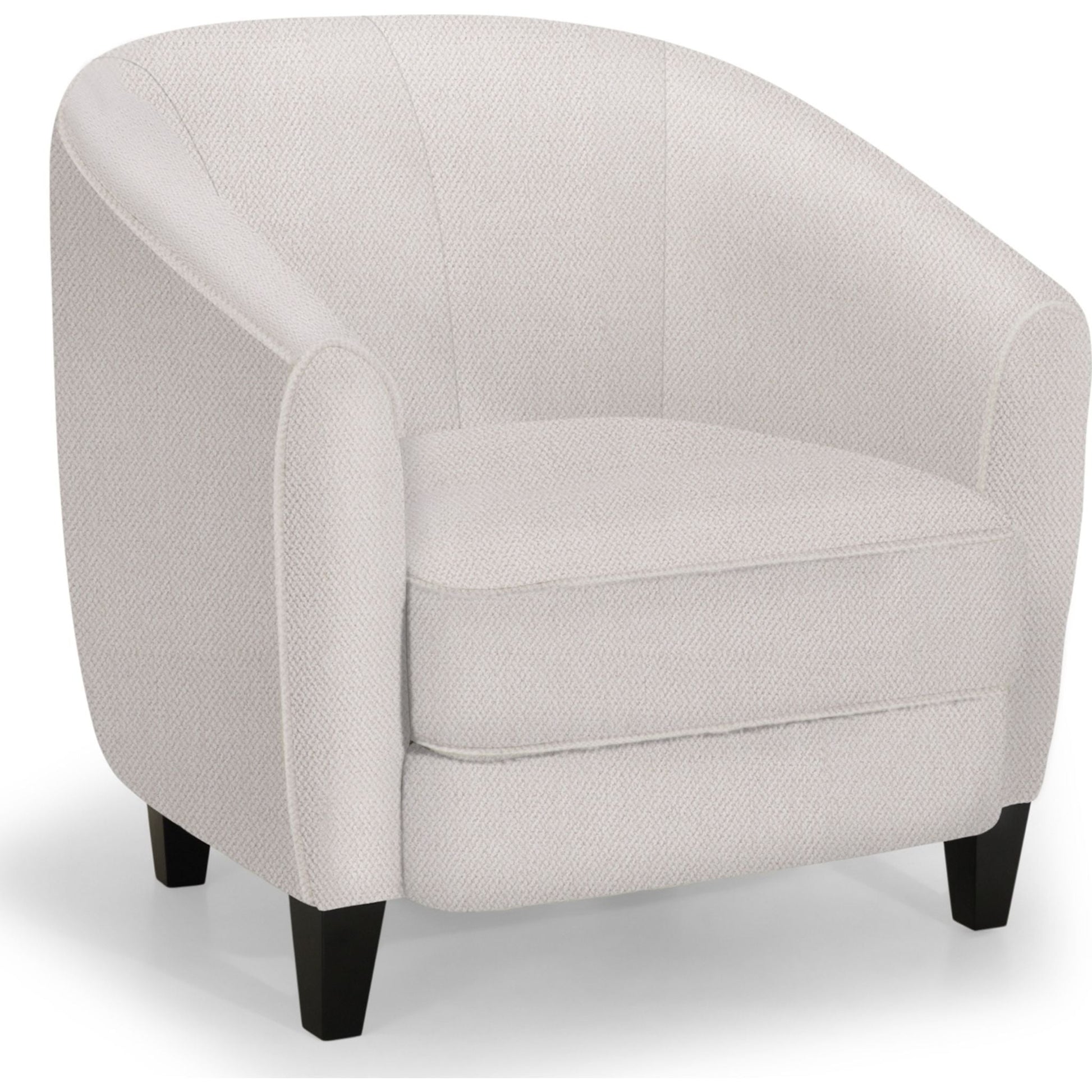 This classic go-anywhere tub chair has a stationary base. Tight back and seat, vertical seams in the back add detail.