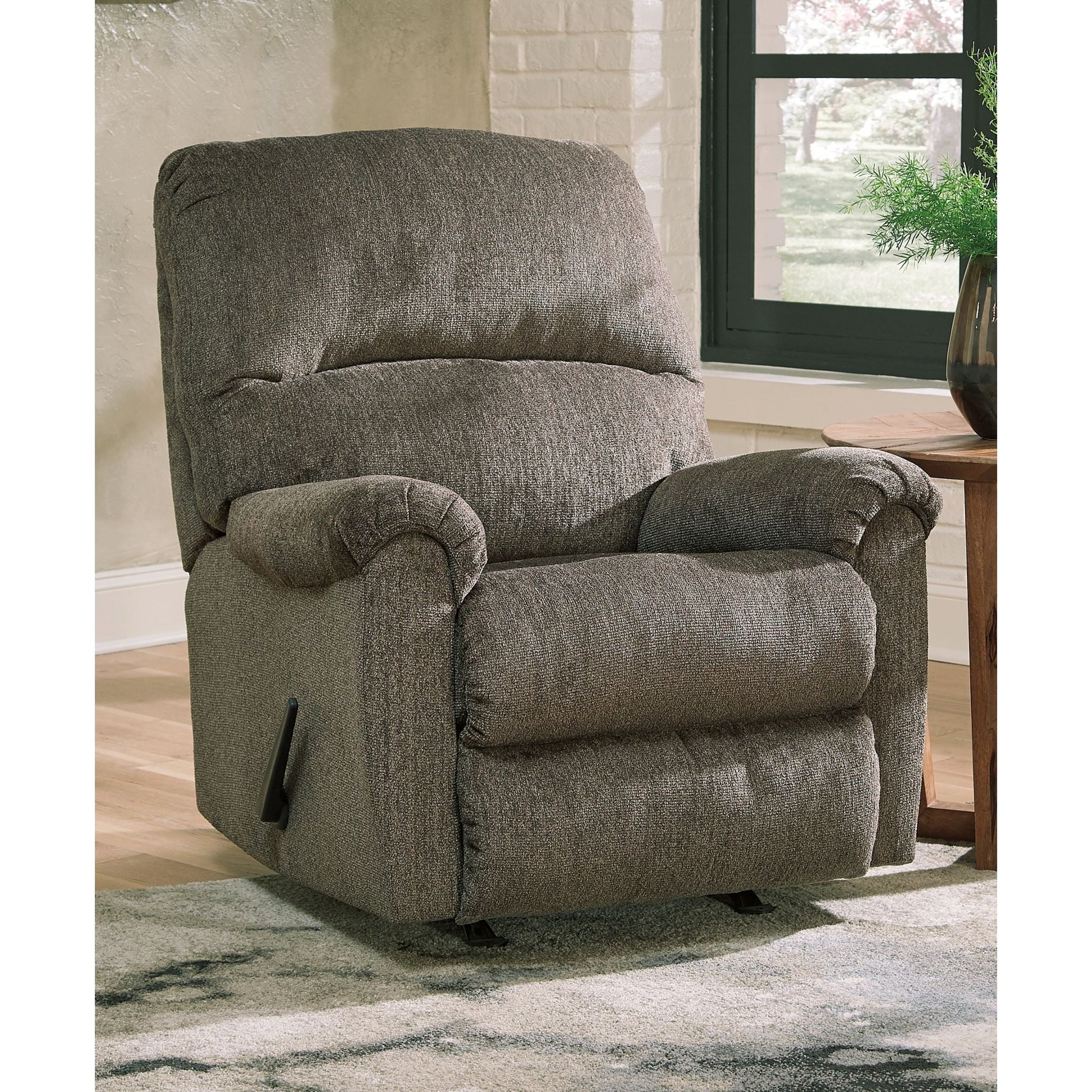 This rocker recliner has the corner on ultra-contemporary style made for easy, everyday living. Upholstered in a plush slate chenille, it takes neutral sophistication to another level. Kick back and relax. The look you love comes with a luxurious feel at a price to entice.