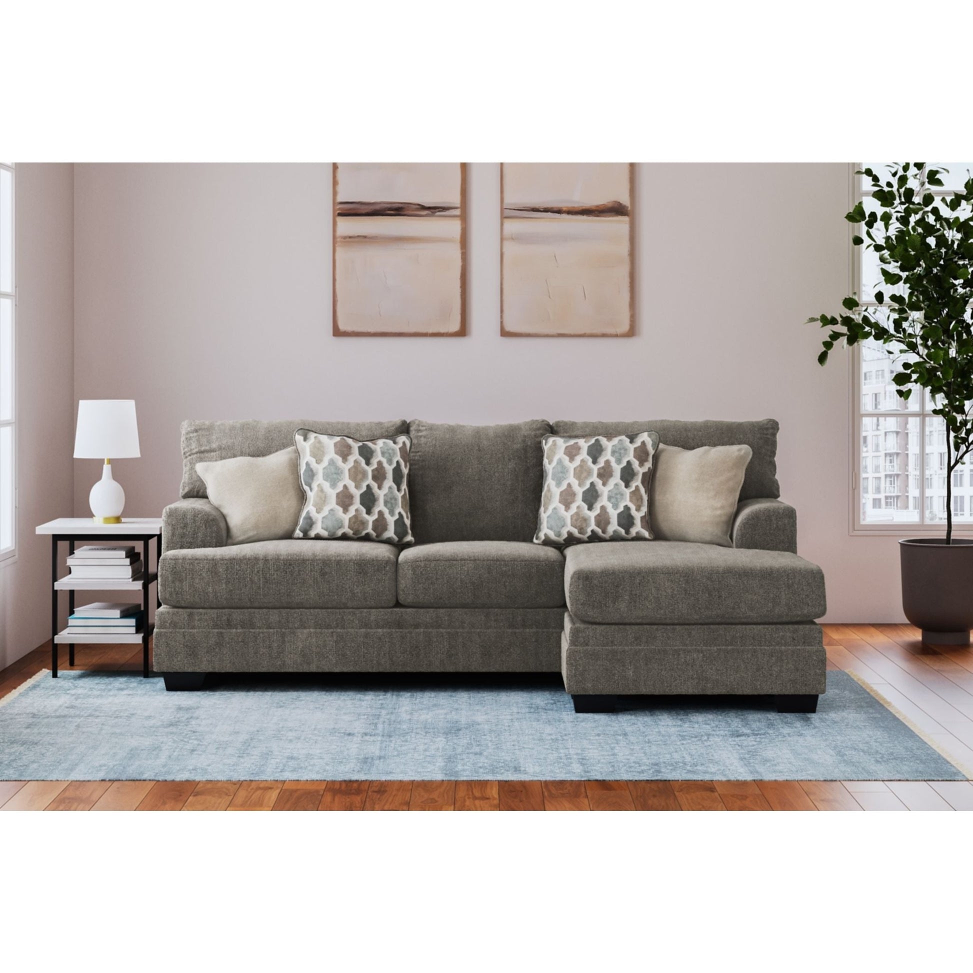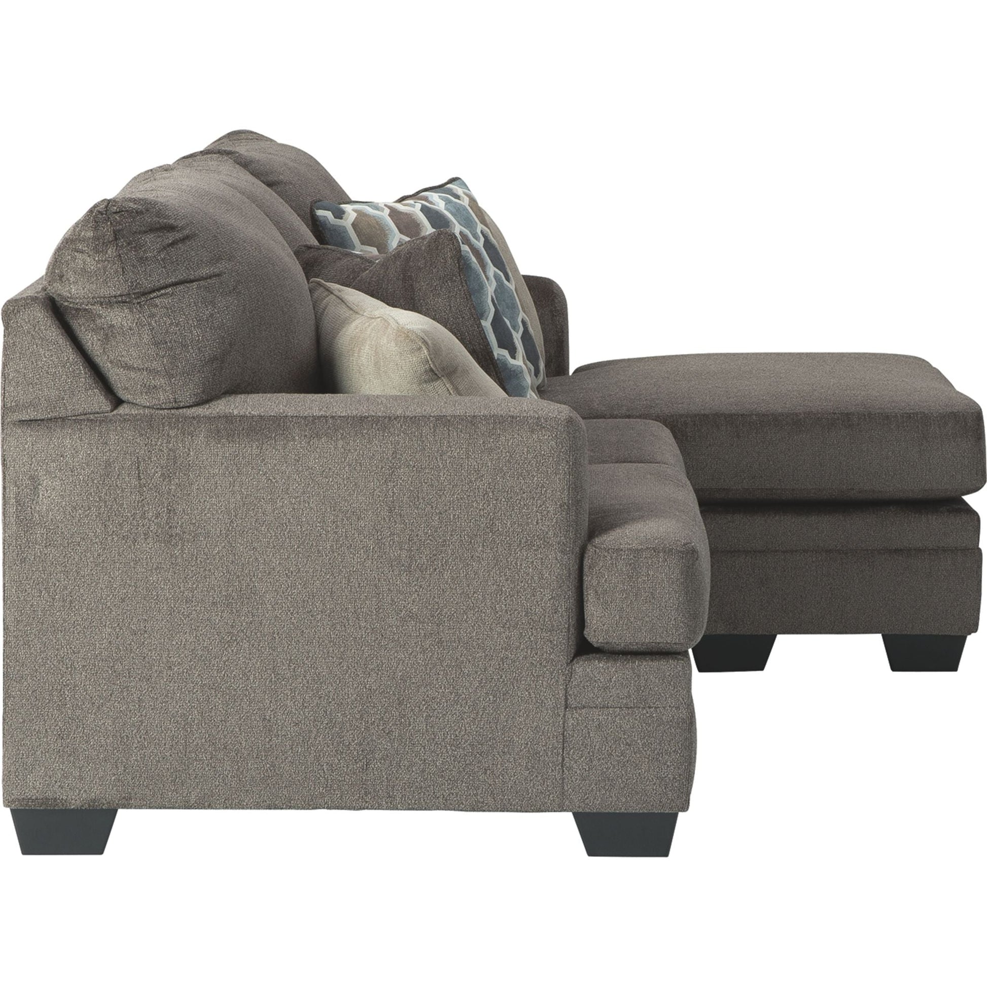 This sofa chaise has the corner on ultra-contemporary style made for easy, everyday living. Upholstered in a plush slate chenille, it takes neutral sophistication to another level. And talk about accommodating. Thanks to a versatile chaise with movable ottoman and reversible seat cushions, you can enjoy the chaise on either side to suit your space.