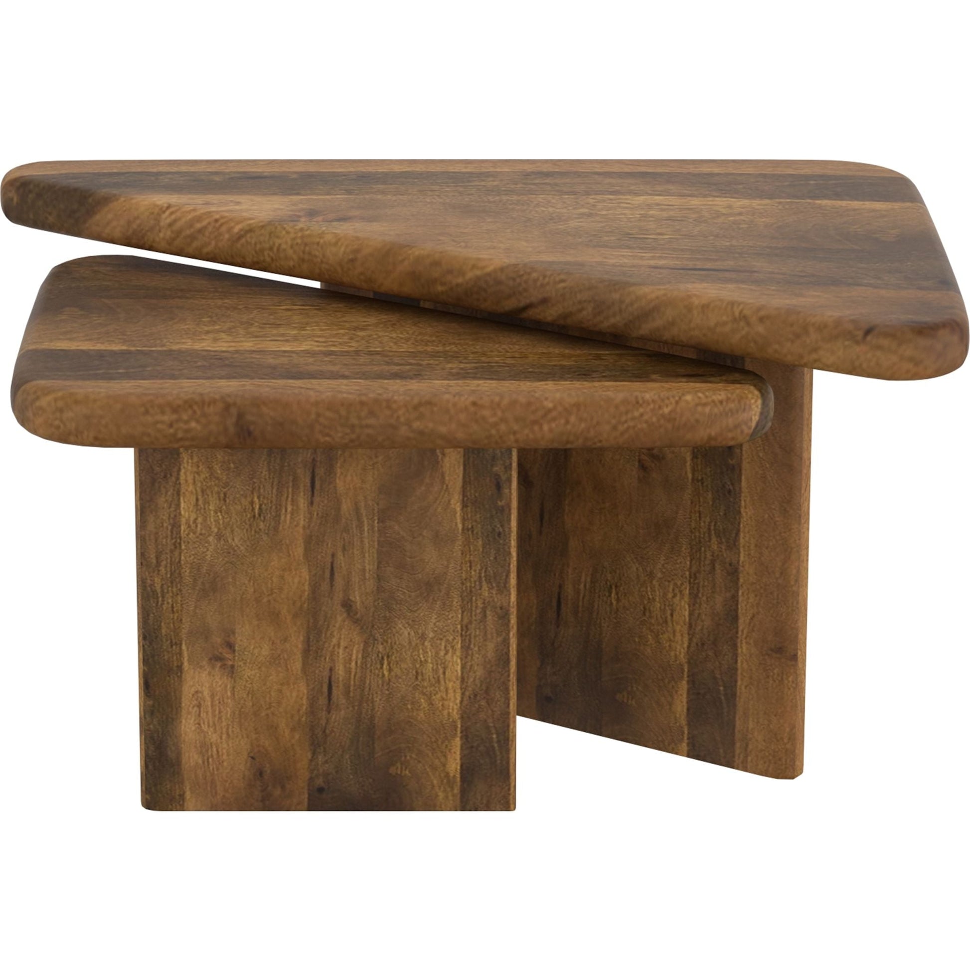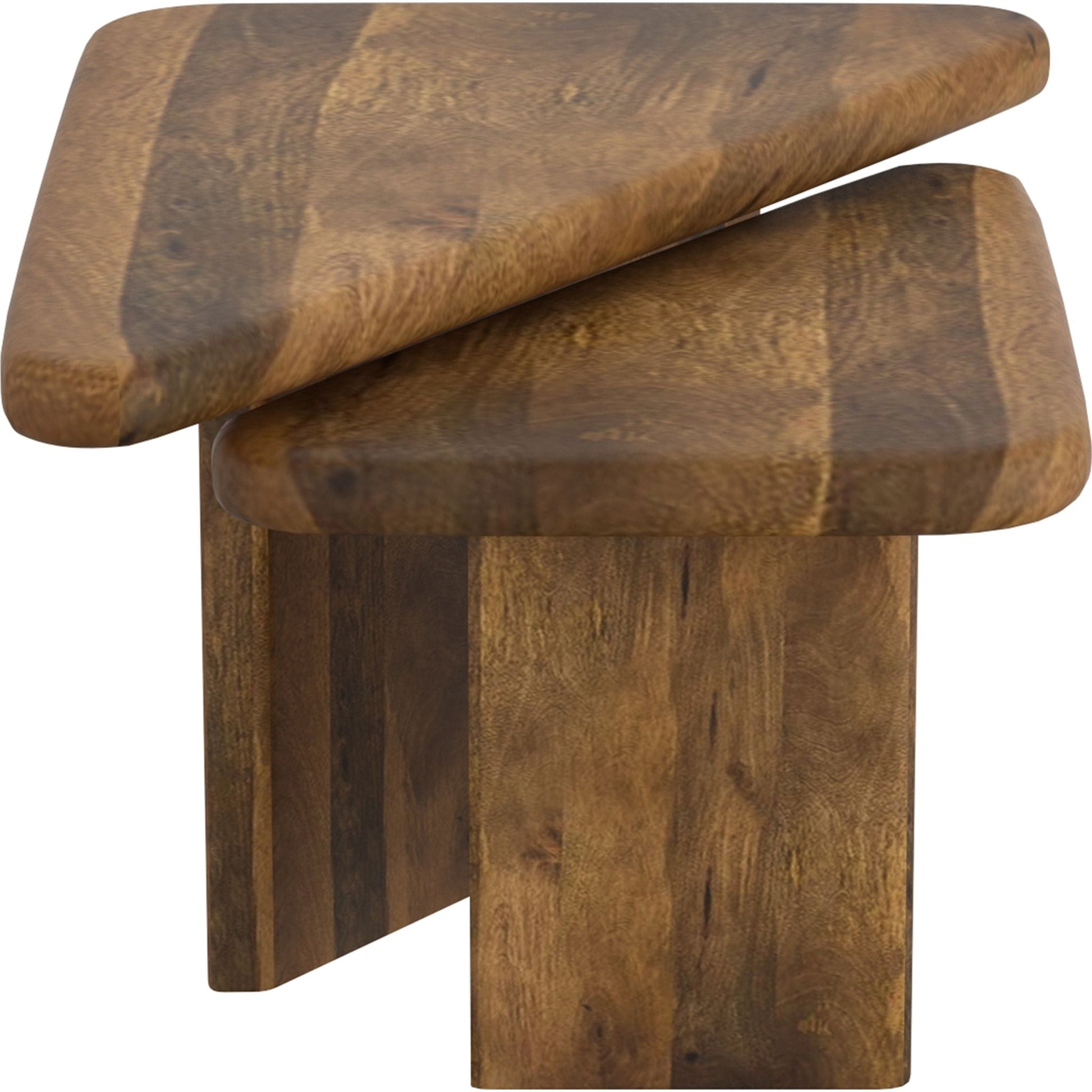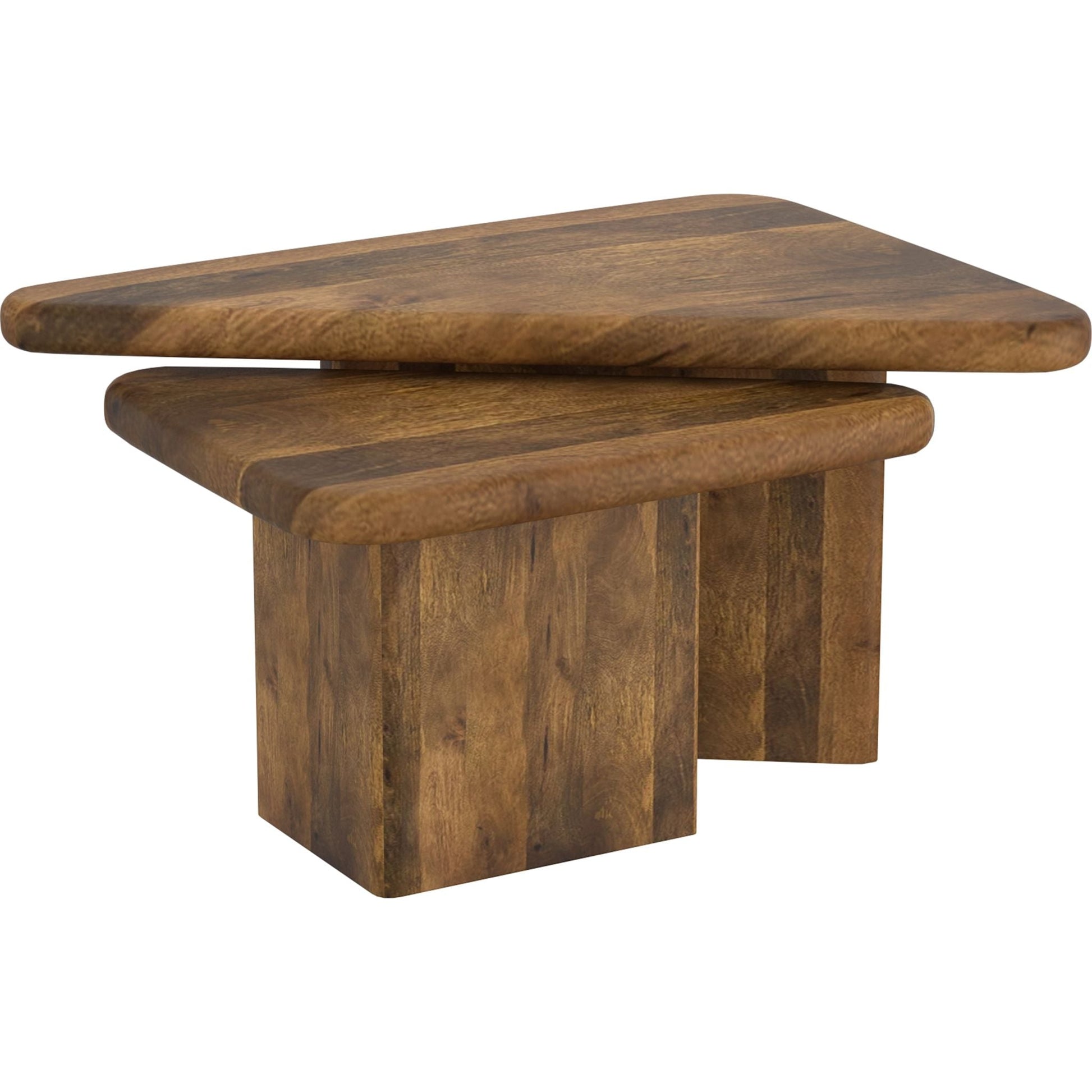 Geometry plays a big part in how our spaces come to life - these triangular tables work well create that visual interest. The solid mango wood tables have varying heights so they can be nested together or placed separately, whatever configuration appeals to you. Thick and sturdy tables tops are great to hold a host of snacks for a dinner party, or to kick your feet up on at the end of the day. Smaller scale tables will work well in smaller spaces, or nested together will create a larger table look.