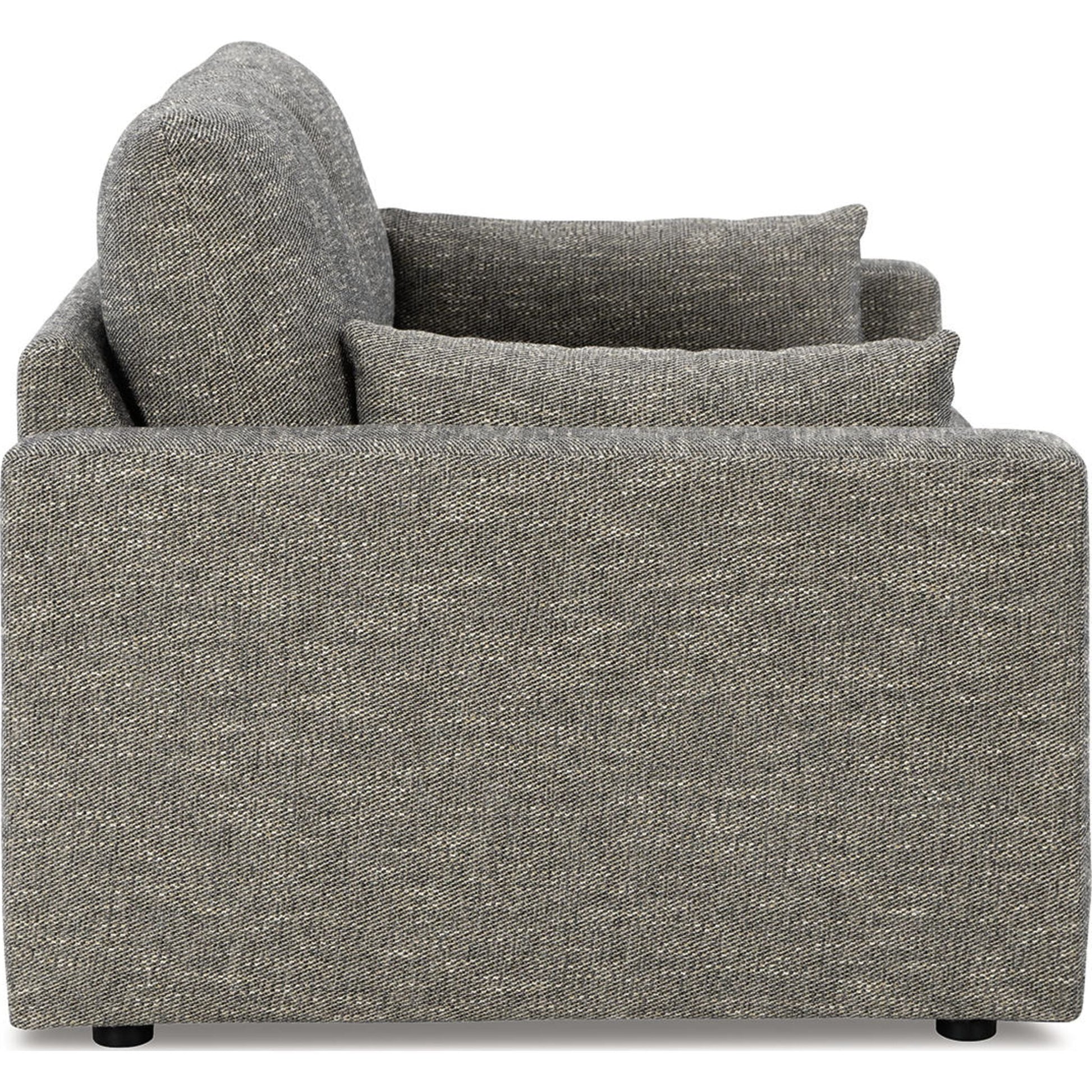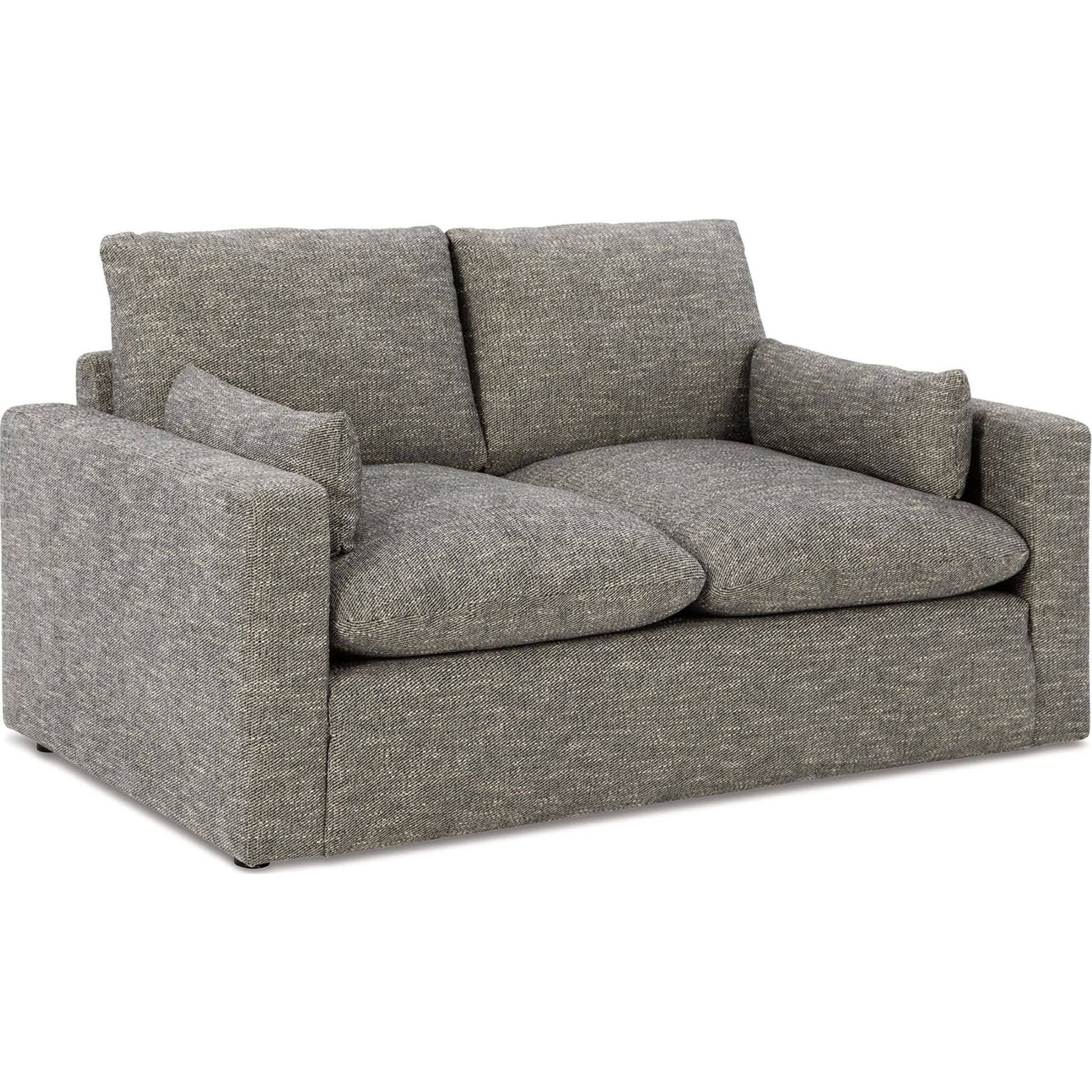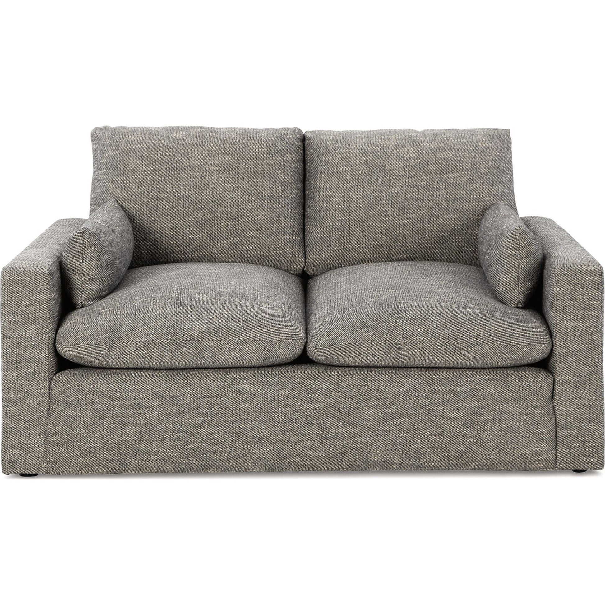 On the days when rest and relaxation seem out of reach, this loveseat provides a positively plush seating experience. Its feather-fiber blend cushions invite you to float away in cloud-like comfort. Striking granite-hued upholstery and a streamlined frame grant this cozy piece a look well-suited to contemporary spaces.