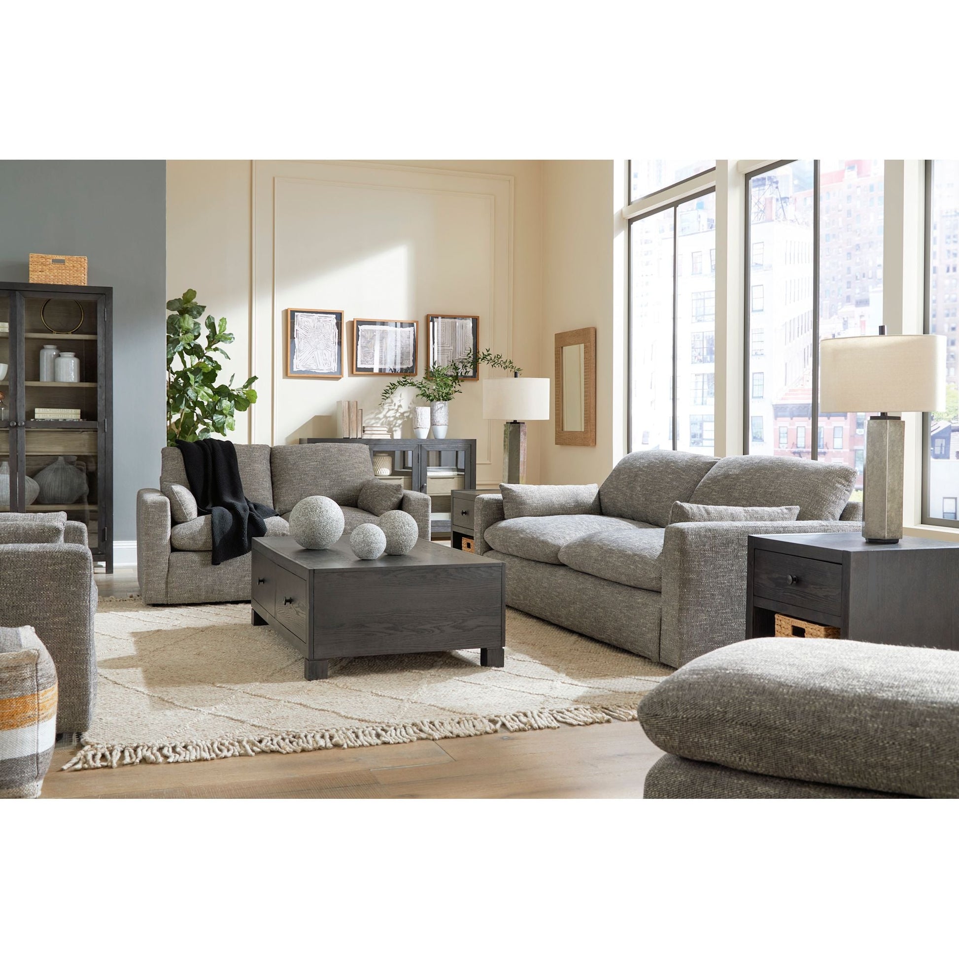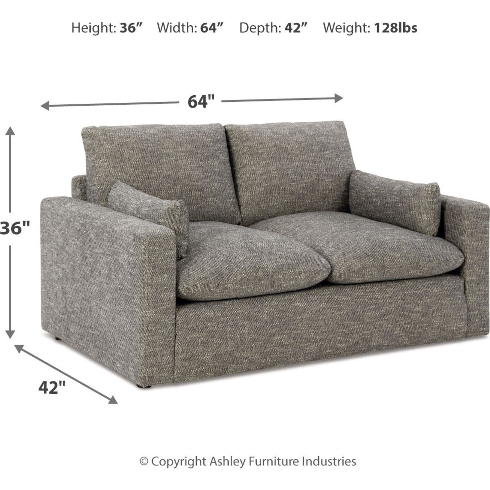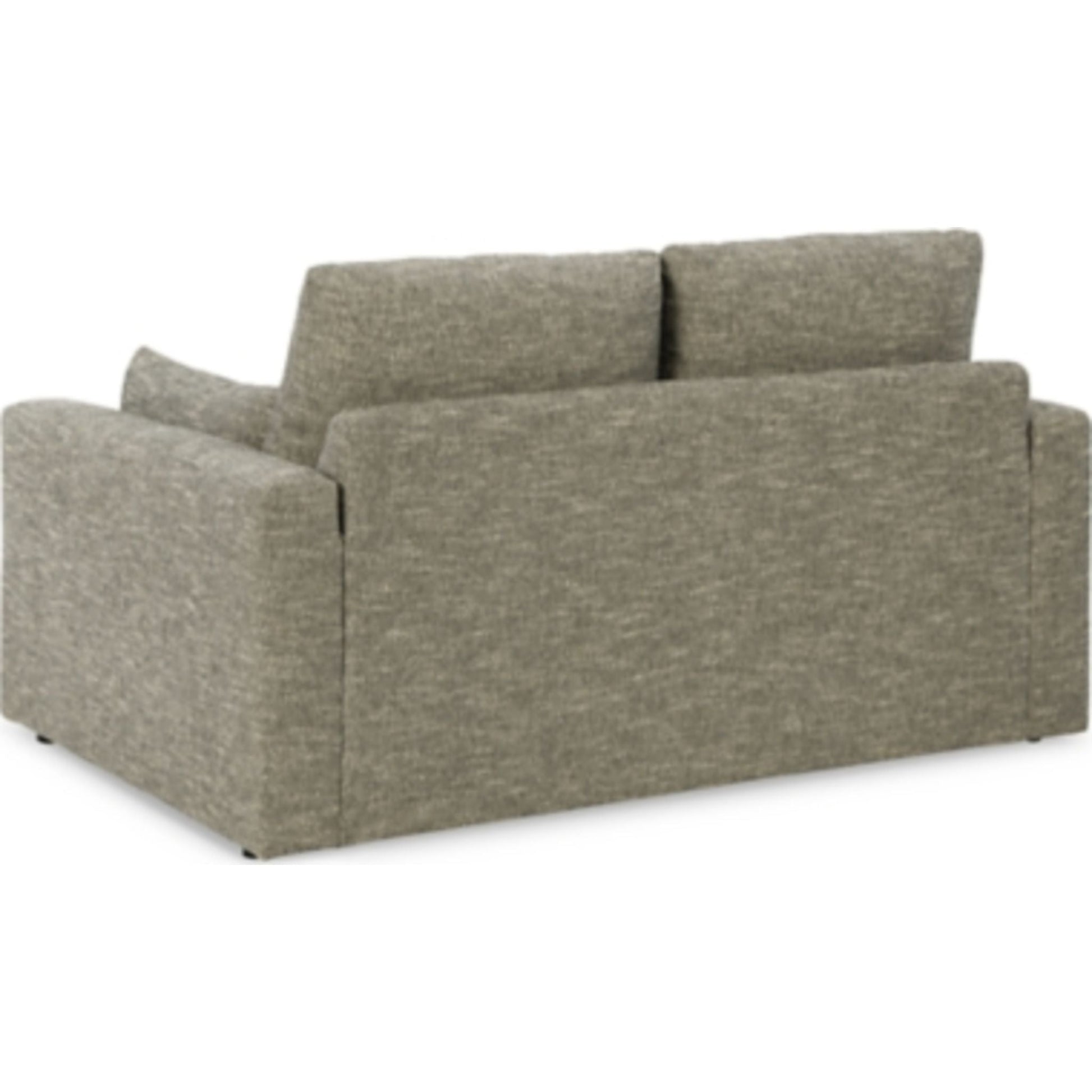On the days when rest and relaxation seem out of reach, this loveseat provides a positively plush seating experience. Its feather-fiber blend cushions invite you to float away in cloud-like comfort. Striking granite-hued upholstery and a streamlined frame grant this cozy piece a look well-suited to contemporary spaces.