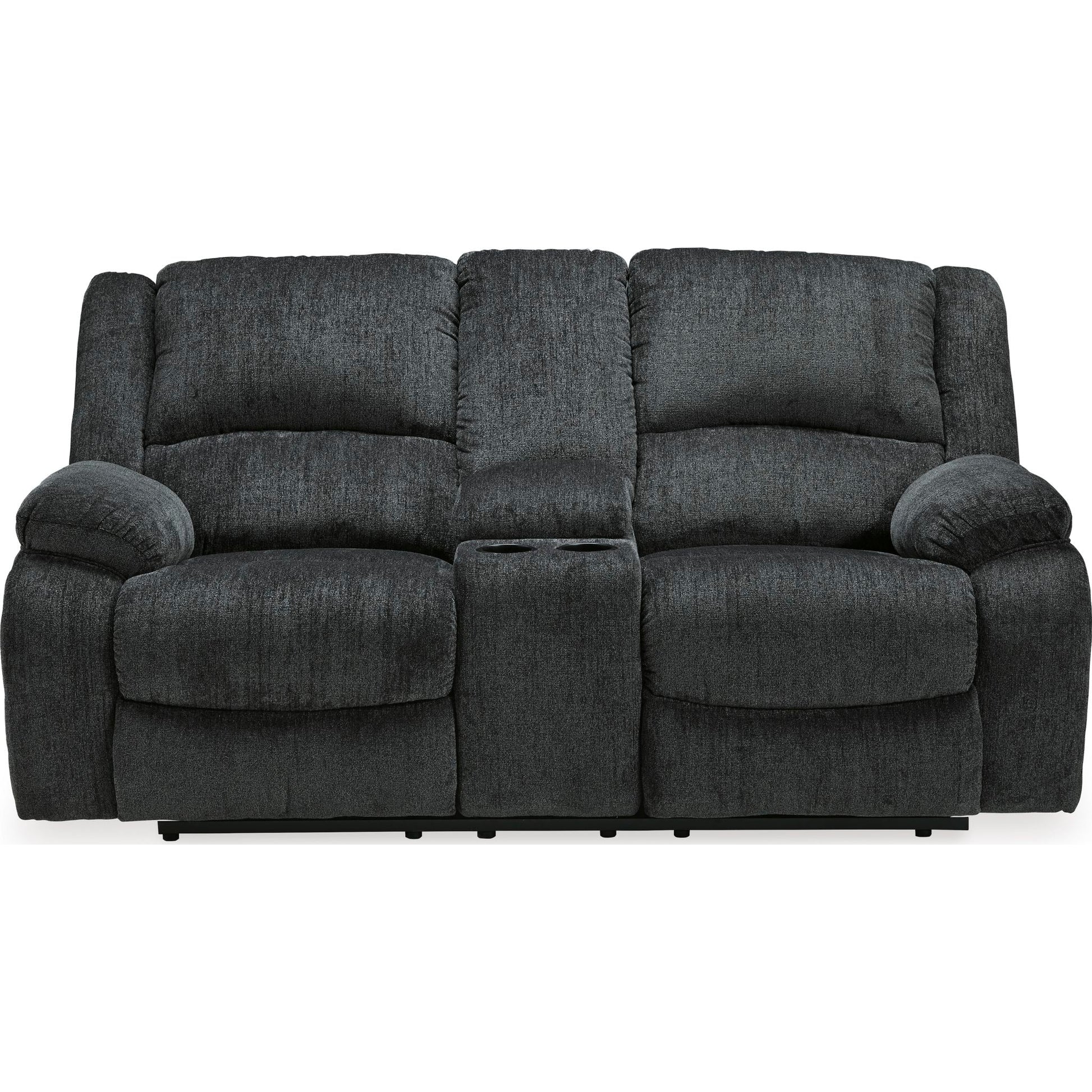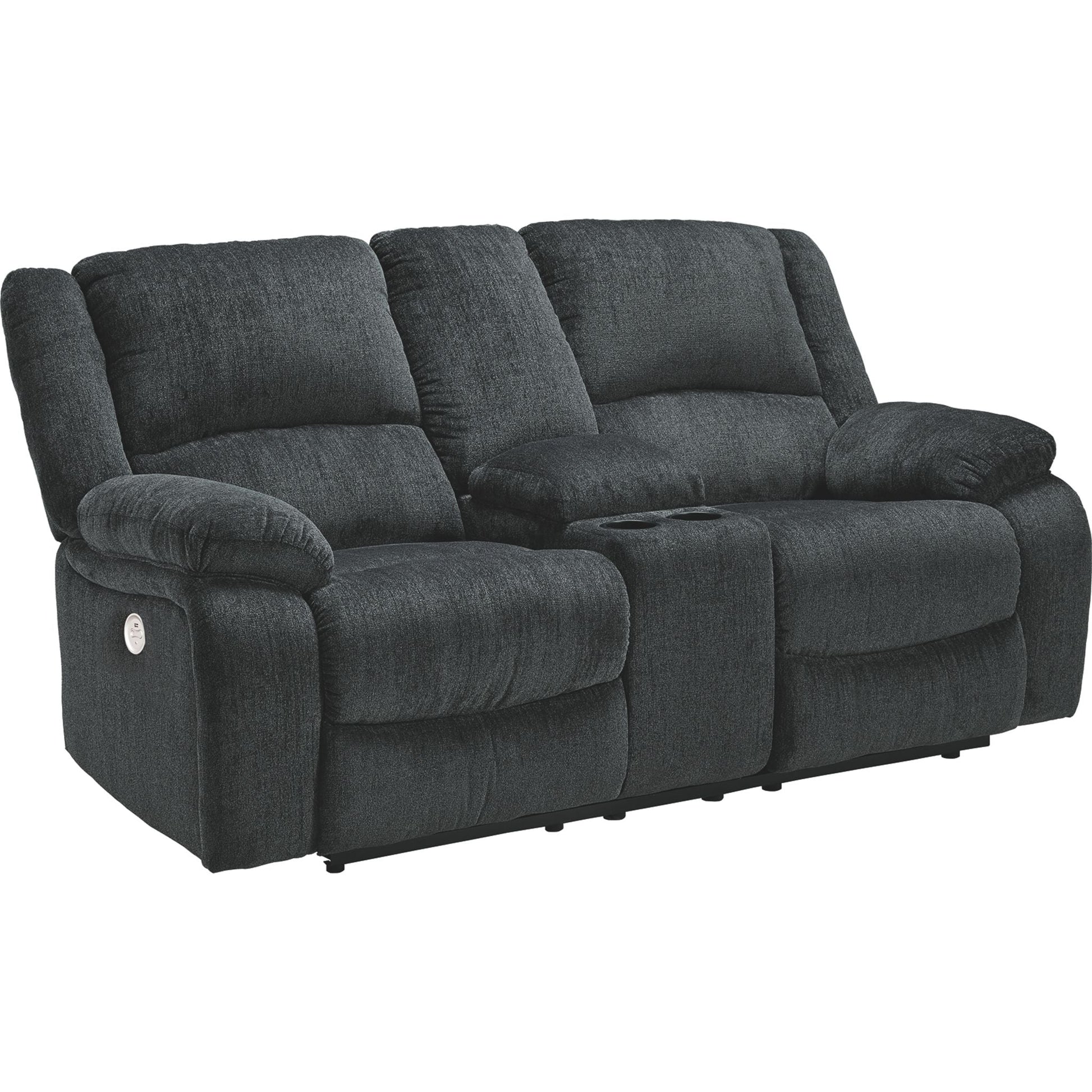 Built for luxury, this power reclining loveseat with center console lets you kick back in reliable style. The thick, softly textured chenille upholstery provides a comfy surface on which to lounge. With bustle back construction and thickly cushioned armrests, this piece gives you the dependable, powered support you need to unwind with the convenience of the center console to ease your evening.