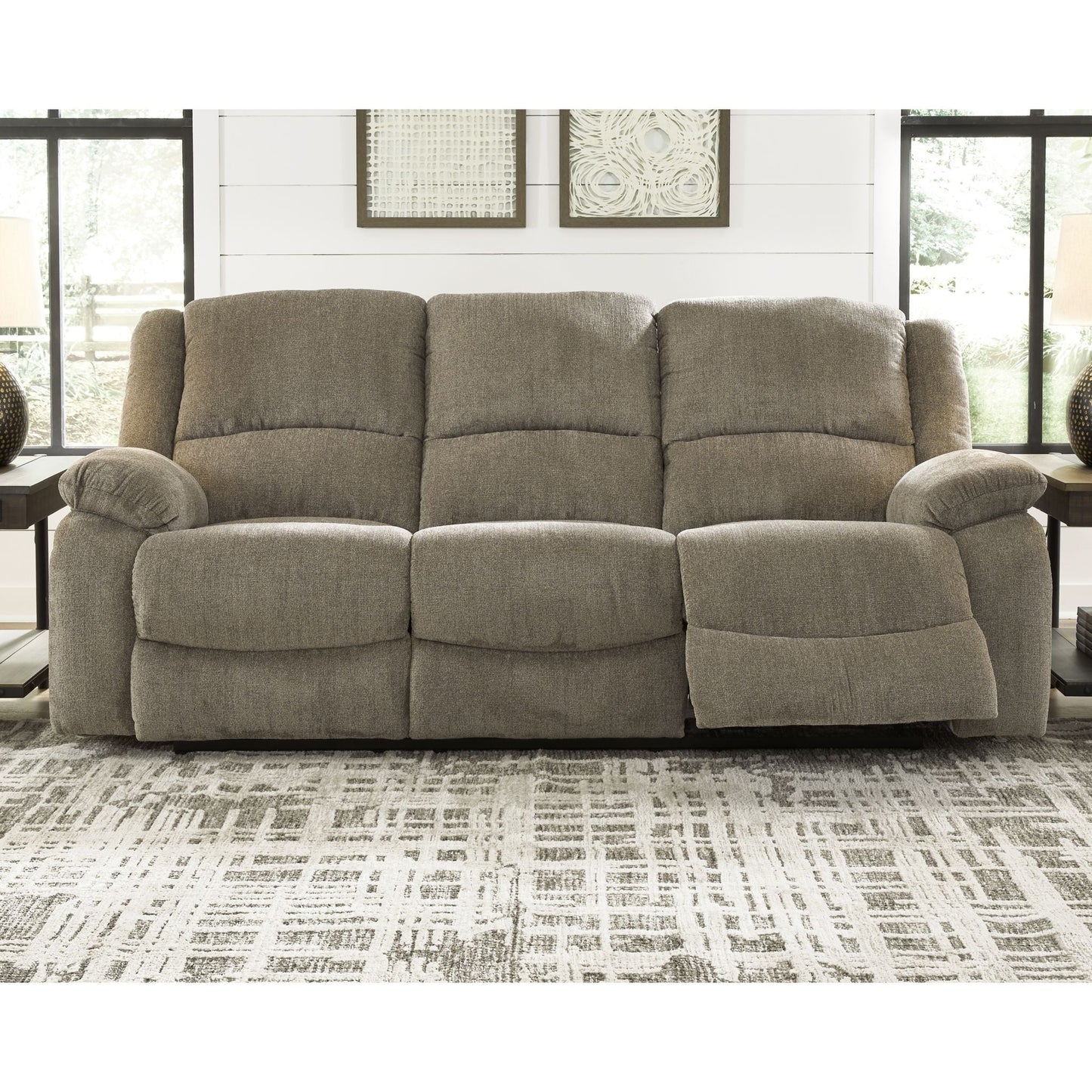 Built for luxury, this reclining sofa lets you kick back in reliable style. The thick, softly textured chenille upholstery provides a comfy surface on which to lounge. With bustle back construction and thickly cushioned armrests, this piece gives you the dependable support you need to unwind after a trying day.