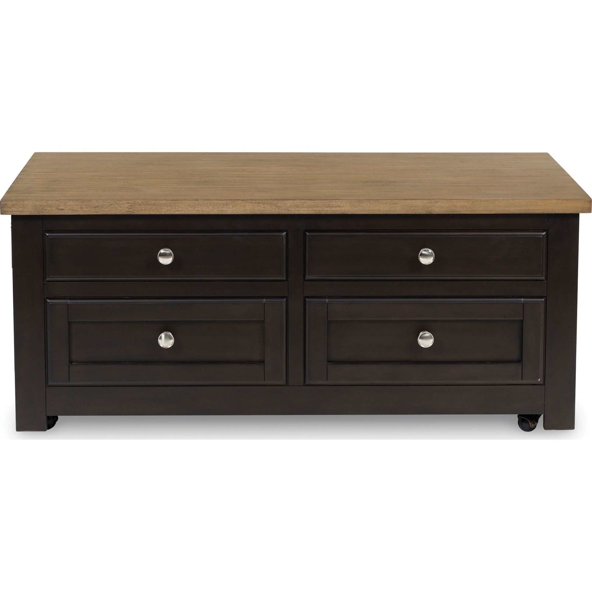 When you’re styling your living room, convenience is key. With this lift-top coffee table, casual flair meets can’t-miss function. The hidden lift top brings added comfort to work-from-home tasks or chilling out by the TV for dinner. When you need to rearrange, built-in casters allow you to wheel the coffee table away with ease. This fashionably functional piece pairs a dark chocolate brown with a light wood tone, complementing a variety of color palettes.