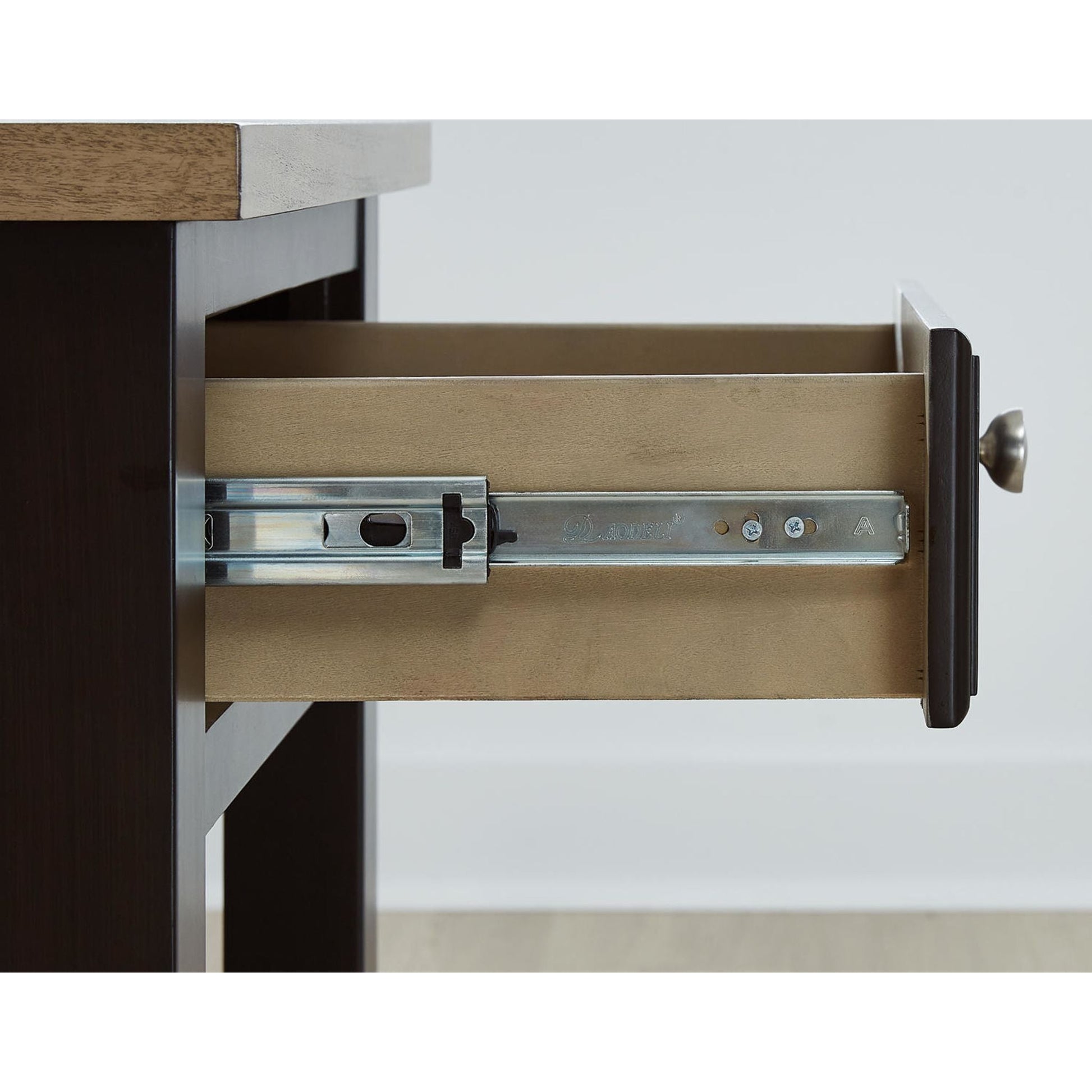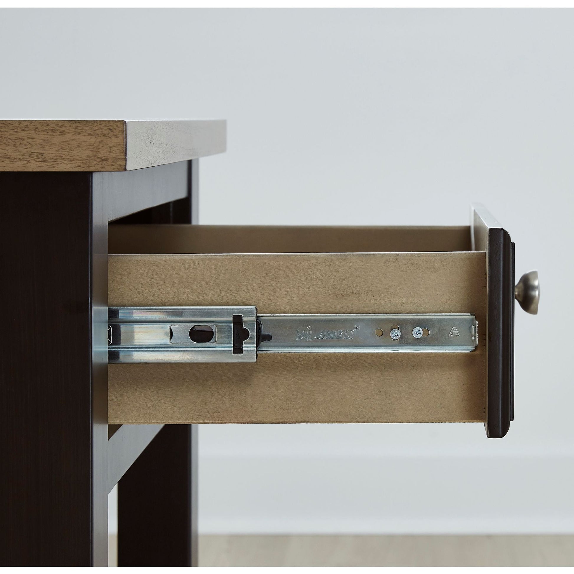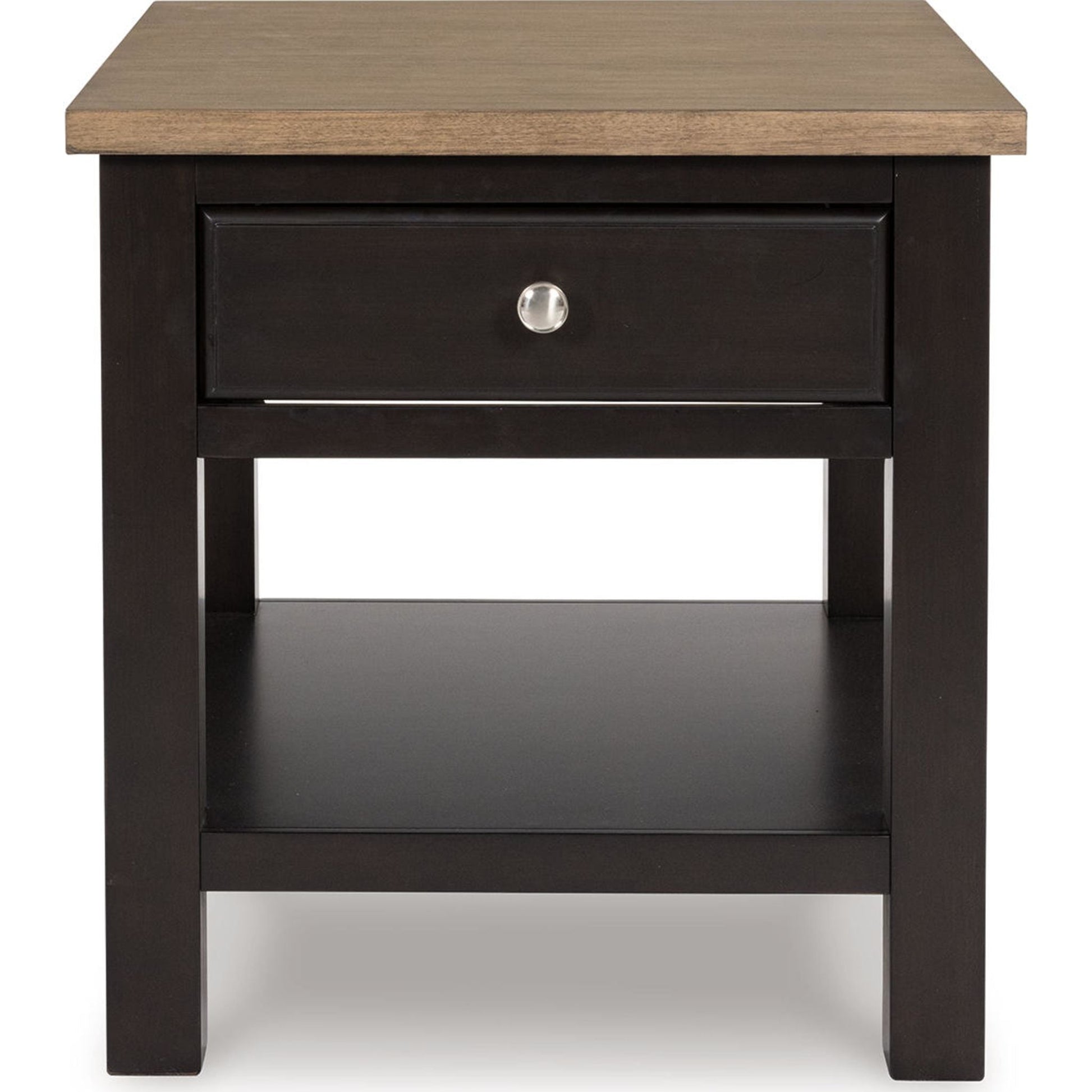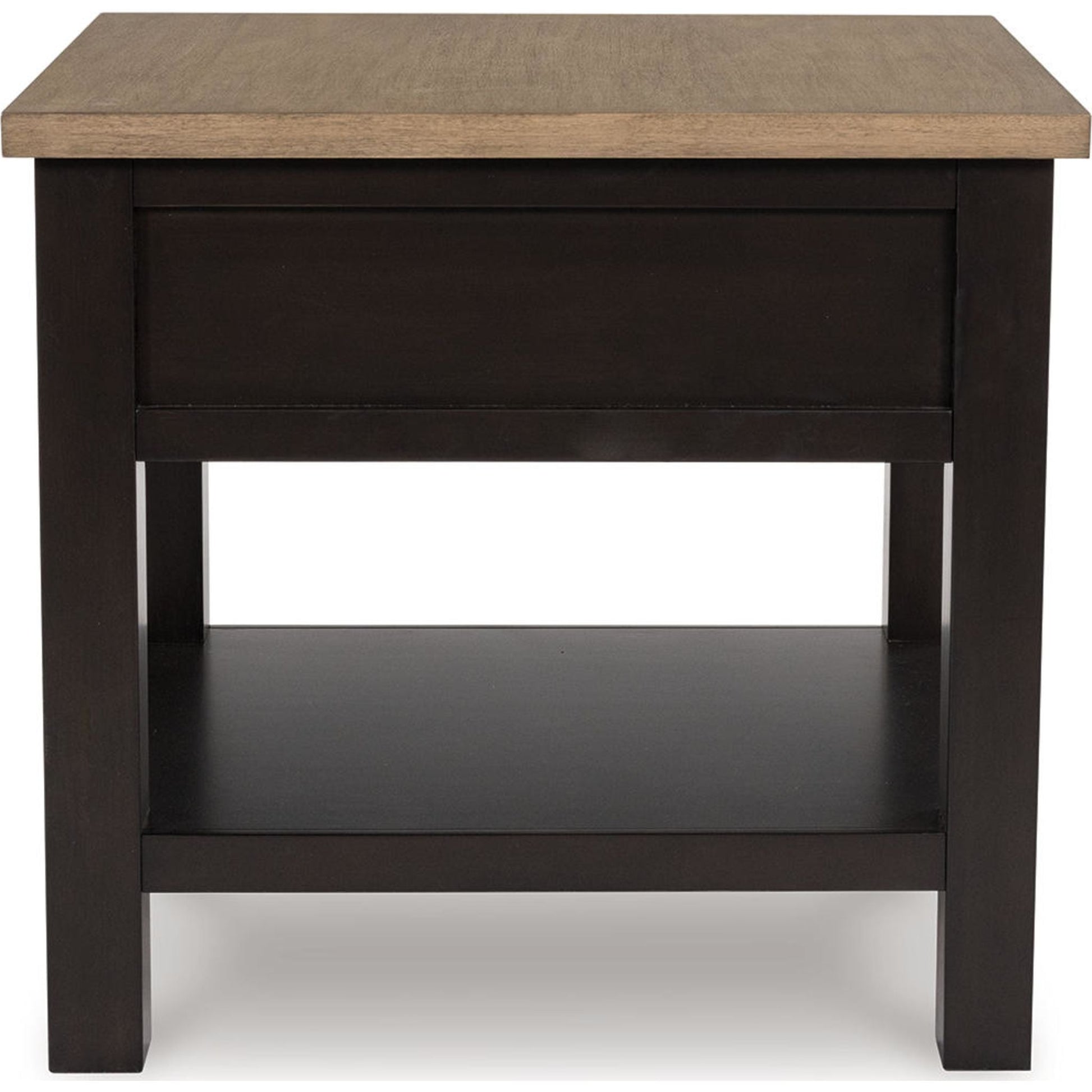 When you’re styling your living room, convenience is key. With this end table, casual flair meets can’t-miss function. Tired of tracking down lost remotes? A handy storage drawer keeps your entertainment essentials close. This fashionably functional piece pairs a dark chocolate brown with a light wood tone, complementing a variety of color palettes.