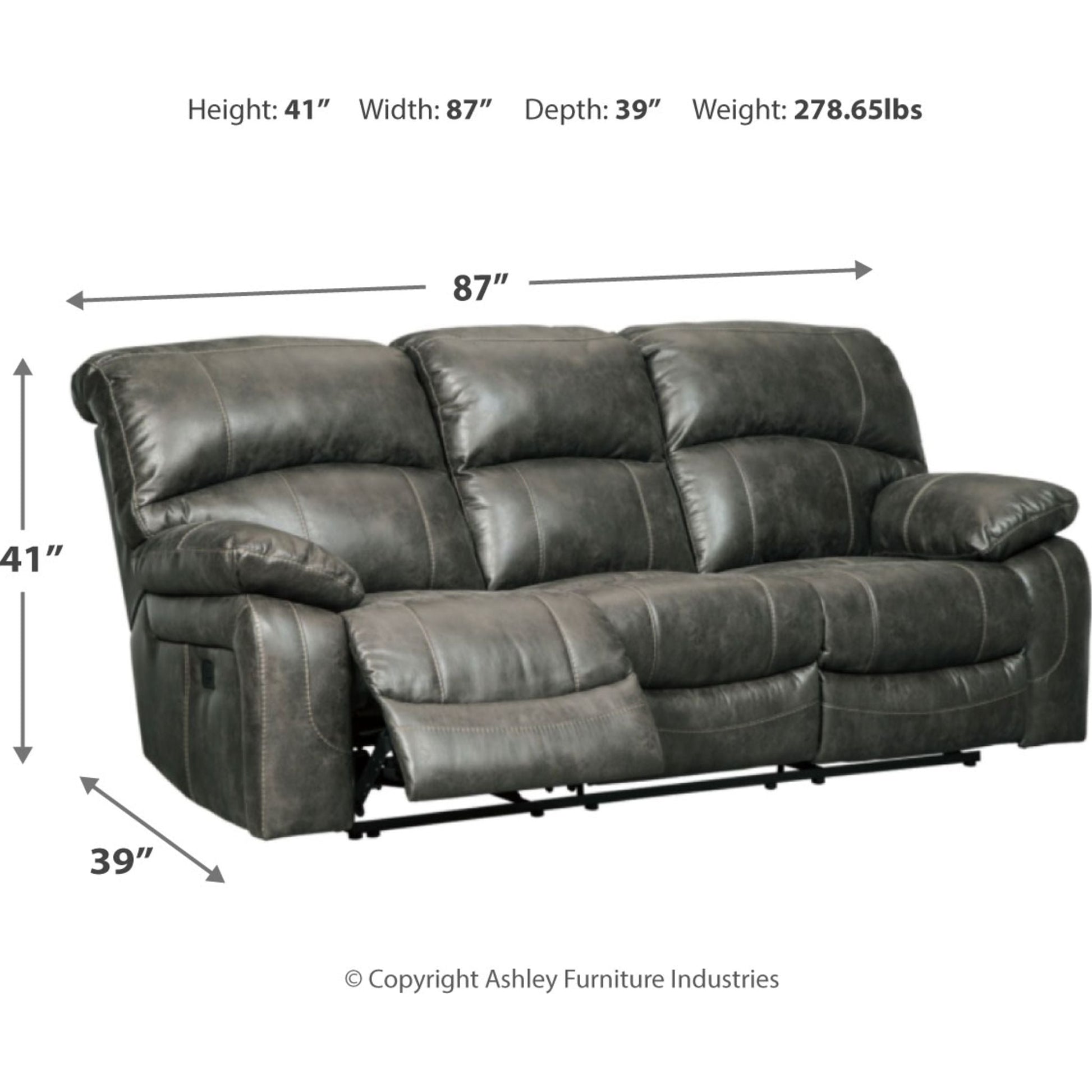 Dunwell Power Reclining Sofa - Steel