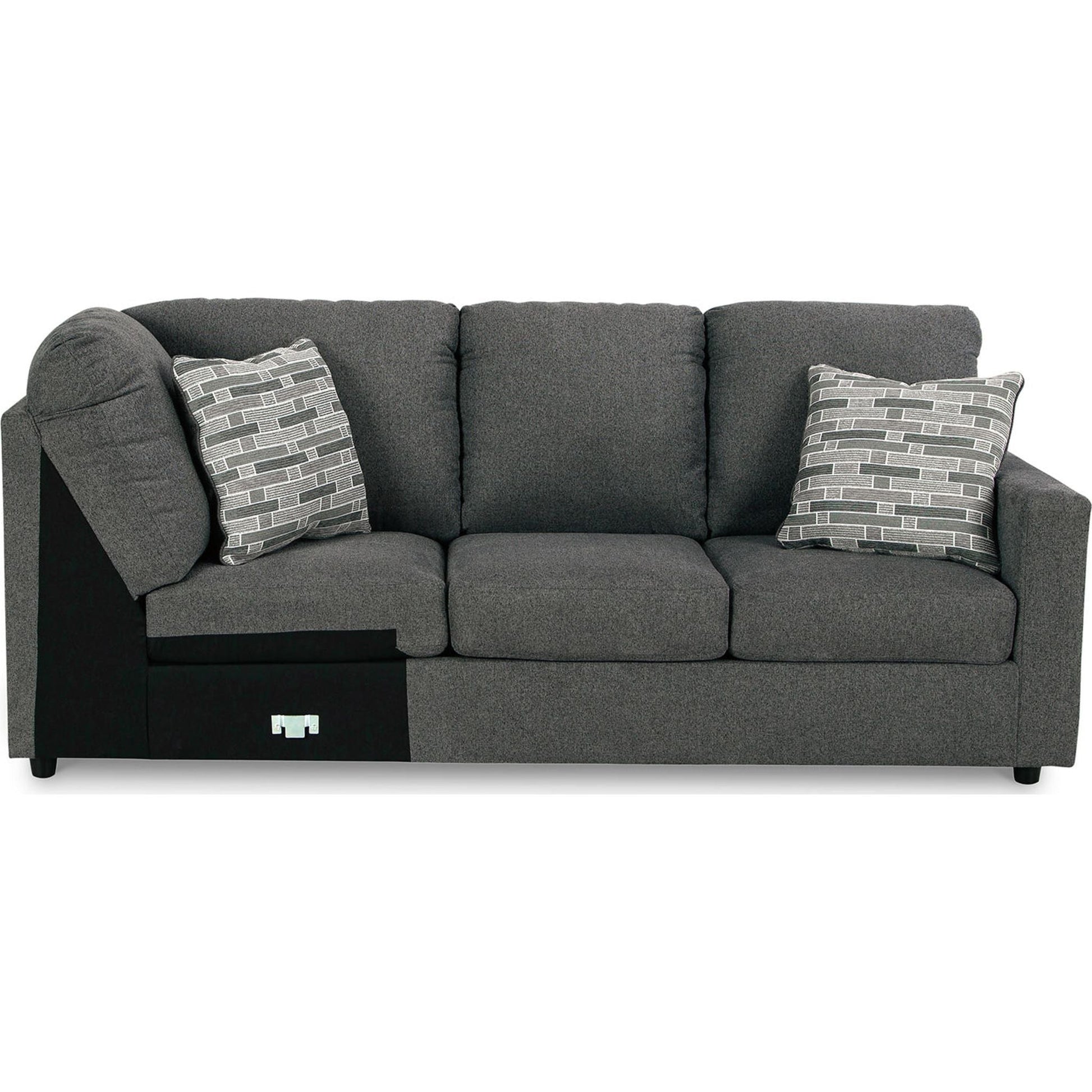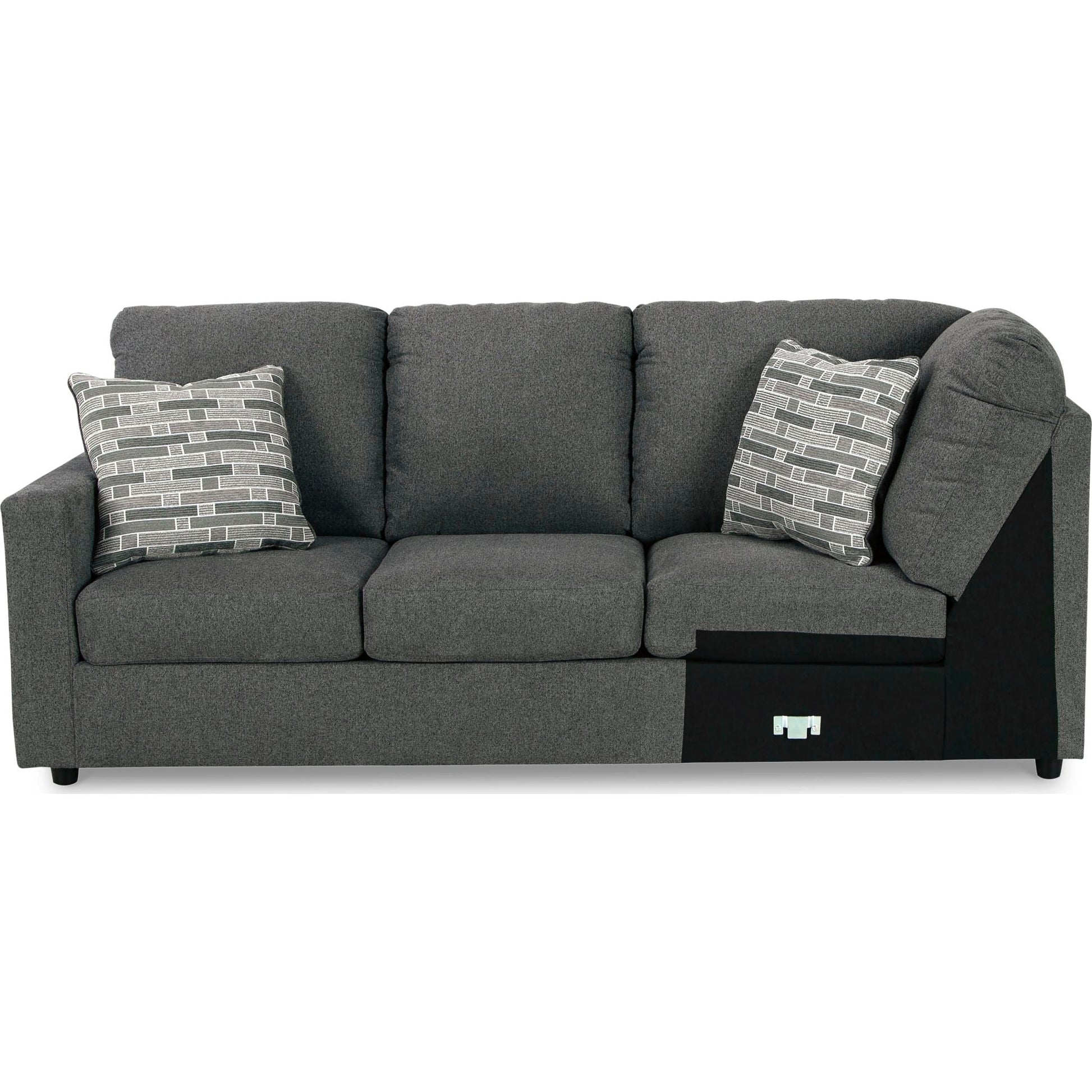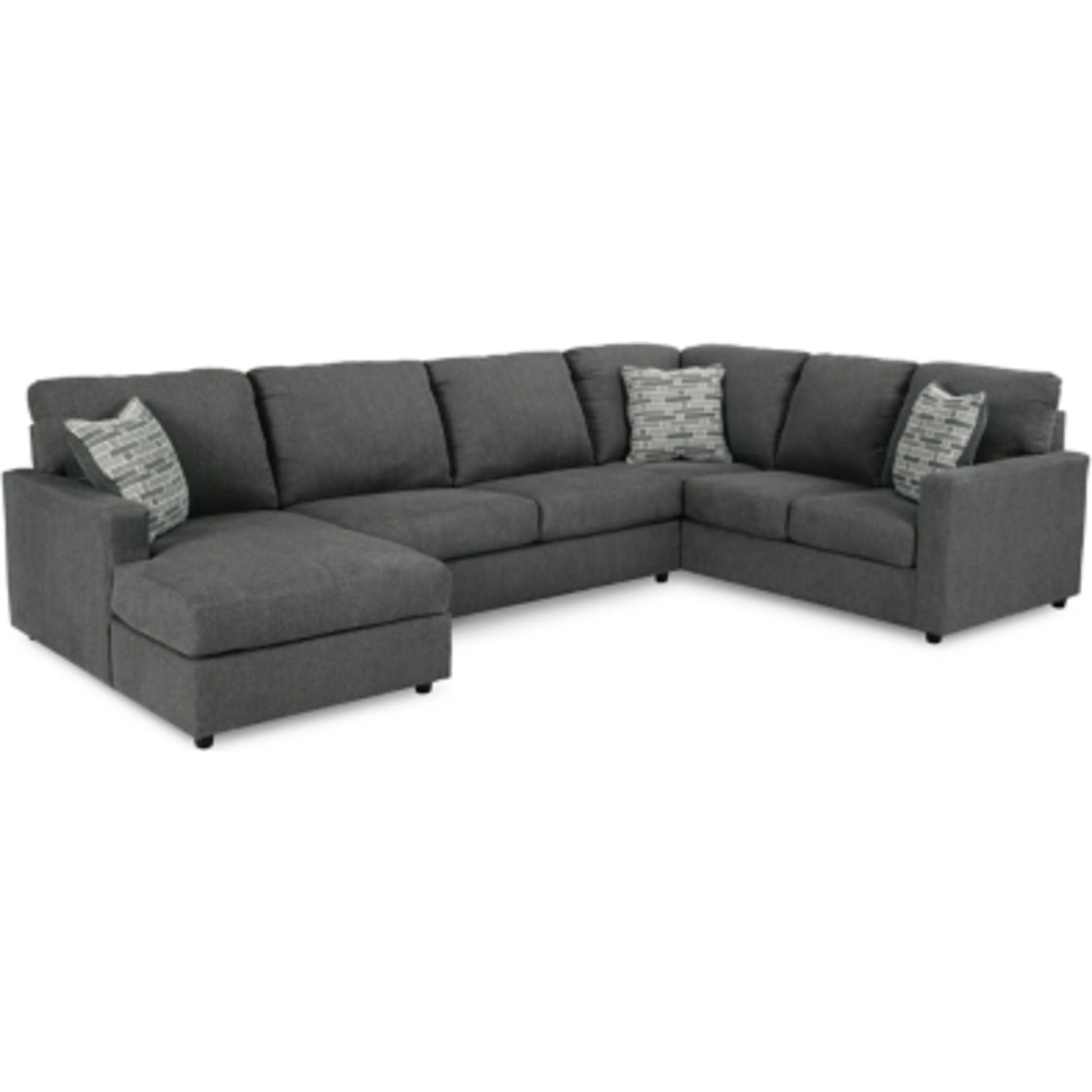 Contemporary fashion, meet superior form. This sectional with chaise is strikingly streamlined with its track arms. Cozy cushions invite superior relaxation, while fresh linen-look upholstery speaks to tried-and-true modern color palettes. Simply kick back, relax and settle into the calm of your curated space.
