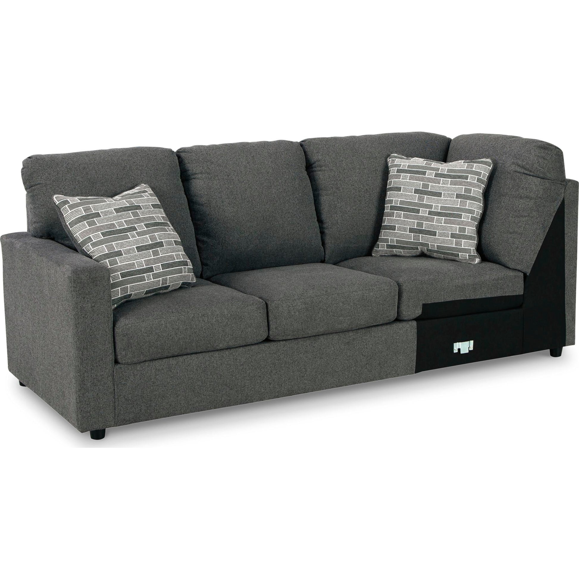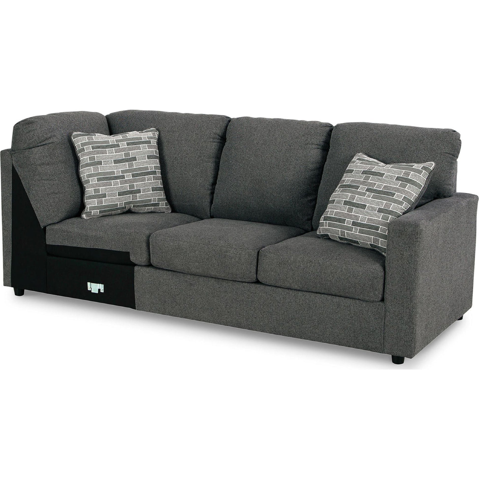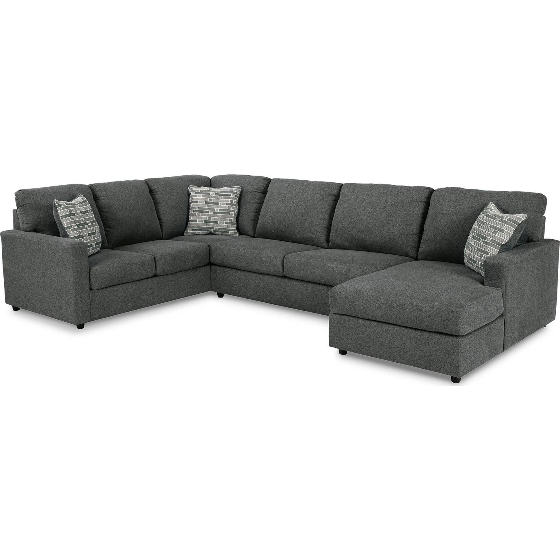 Contemporary fashion, meet superior form. This sectional with chaise is strikingly streamlined with its track arms. Cozy cushions invite superior relaxation, while fresh linen-look upholstery speaks to tried-and-true modern color palettes. Simply kick back, relax and settle into the calm of your curated space.