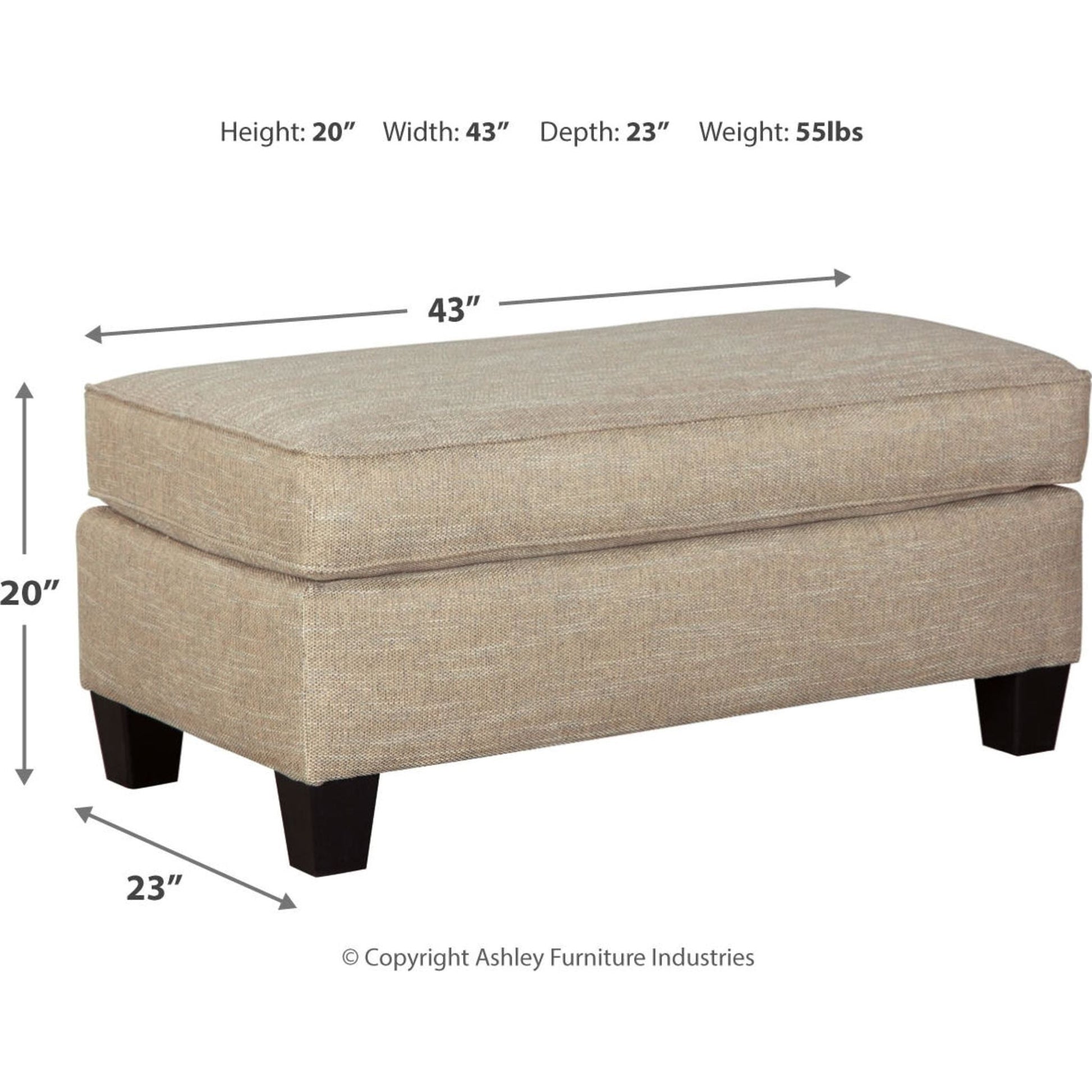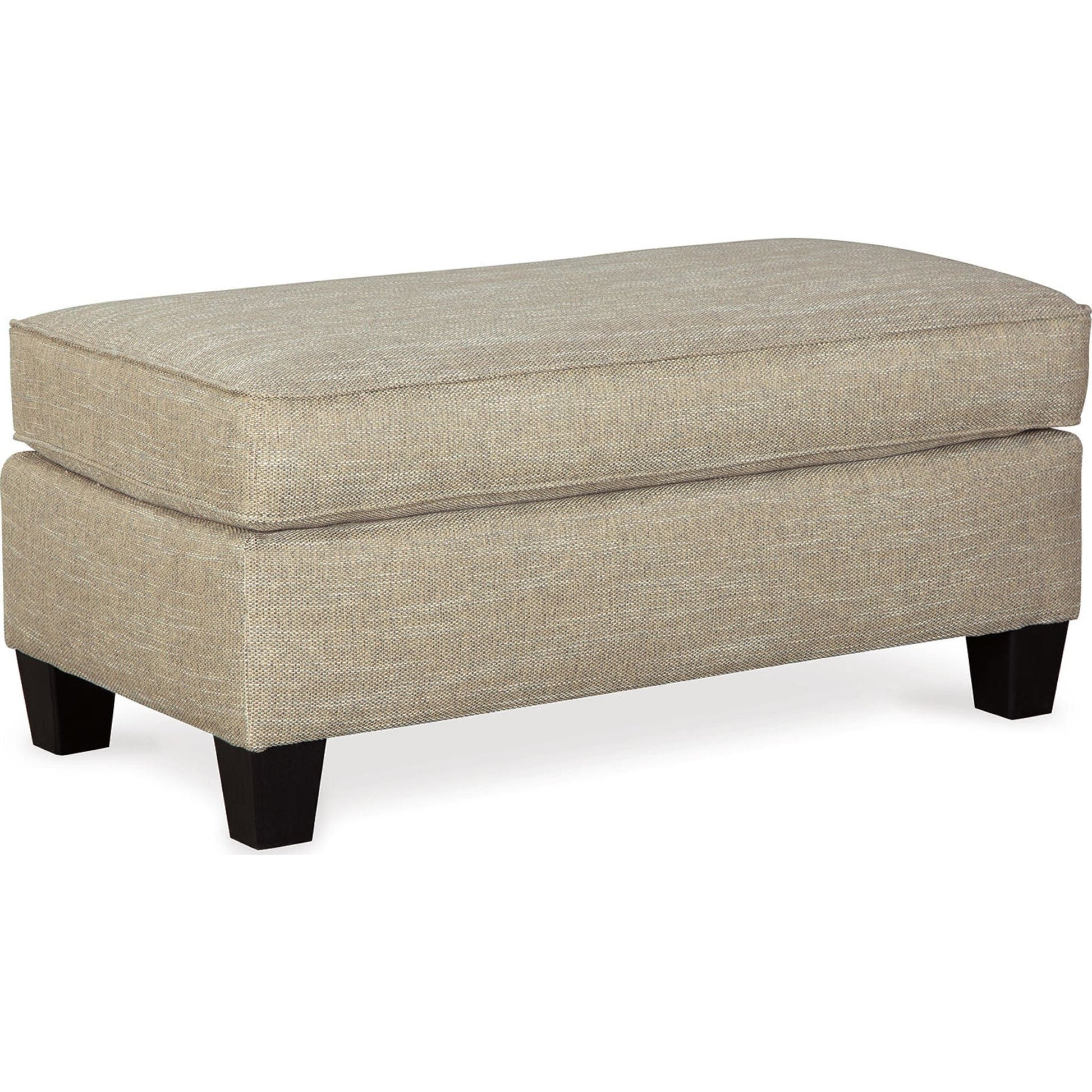 This ottoman brings a classic look beautifully into the present. Loaded with multi-tonal interest, the ottoman’s wheat-hue upholstery is a fresh choice in neutrals. Clean-lined tapered feet in a dark finish infuse modern appeal.