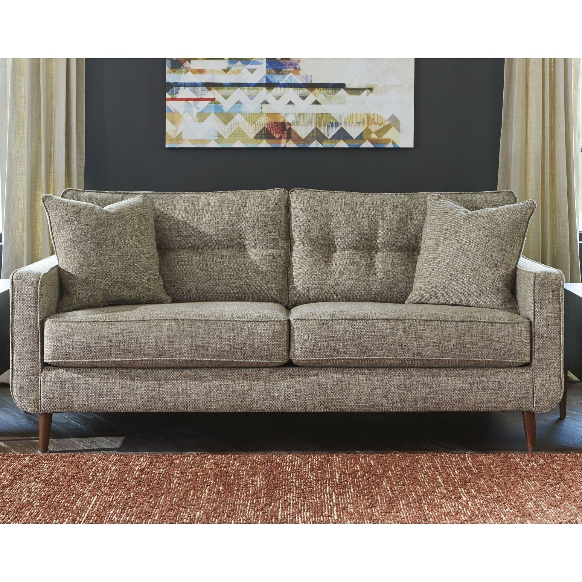 Indulge your love affair with mid-century design with this inspired sofa. Sporting crisp, tight tailoring, menswear-inspired fabric with subtle button tufting and flared peg legs, it’s retro-chic styling at its very best.