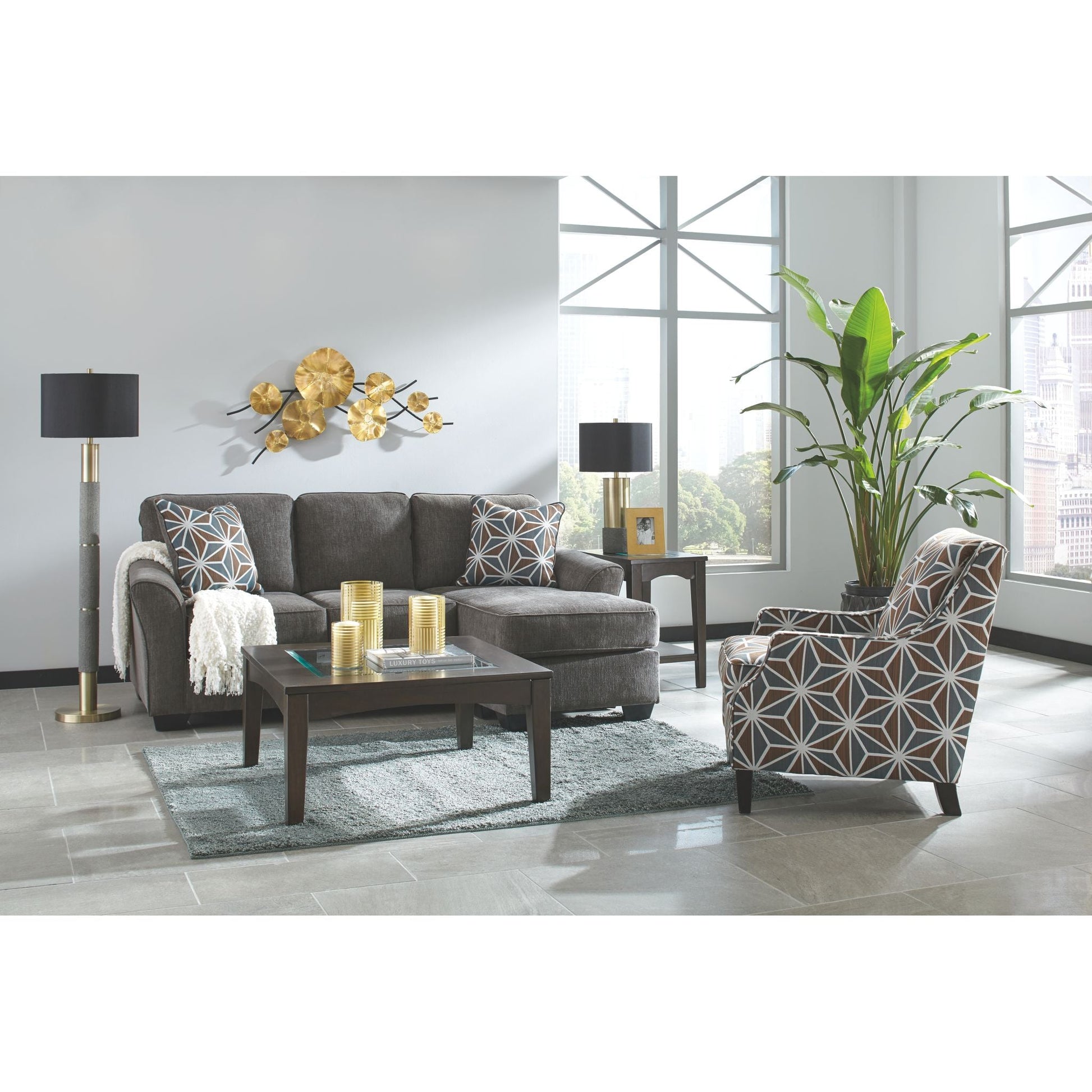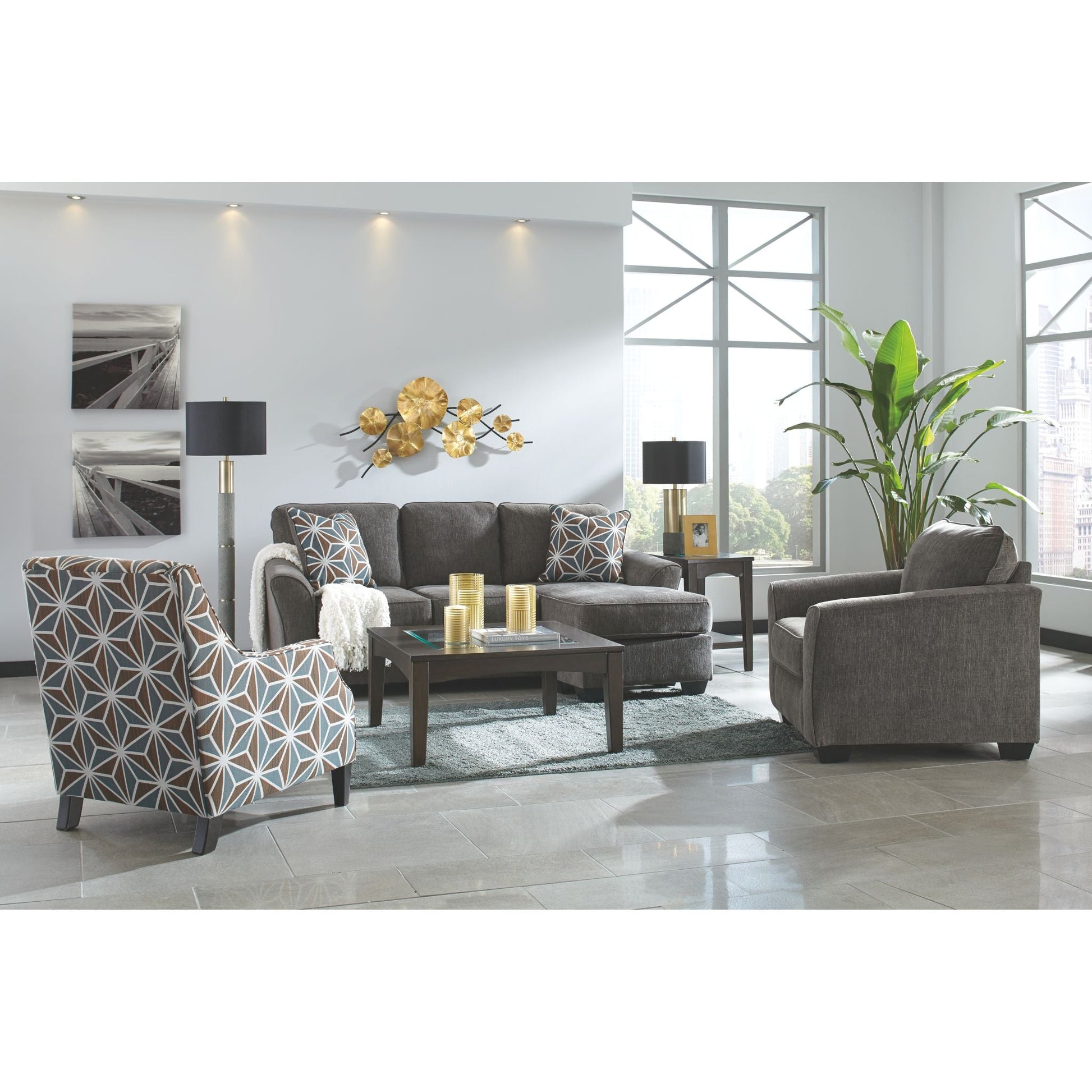 This sofa chaise is so casually contemporary. The 1970s era meets modern day allure with an energetic geometric pattern on the toss pillows. Paired together with slate colored menswear chenille, it’s incredibly comfortable and a show stopping sight. Versatile chaise has a movable ottoman and reversible cushion and can be used on right or left side.