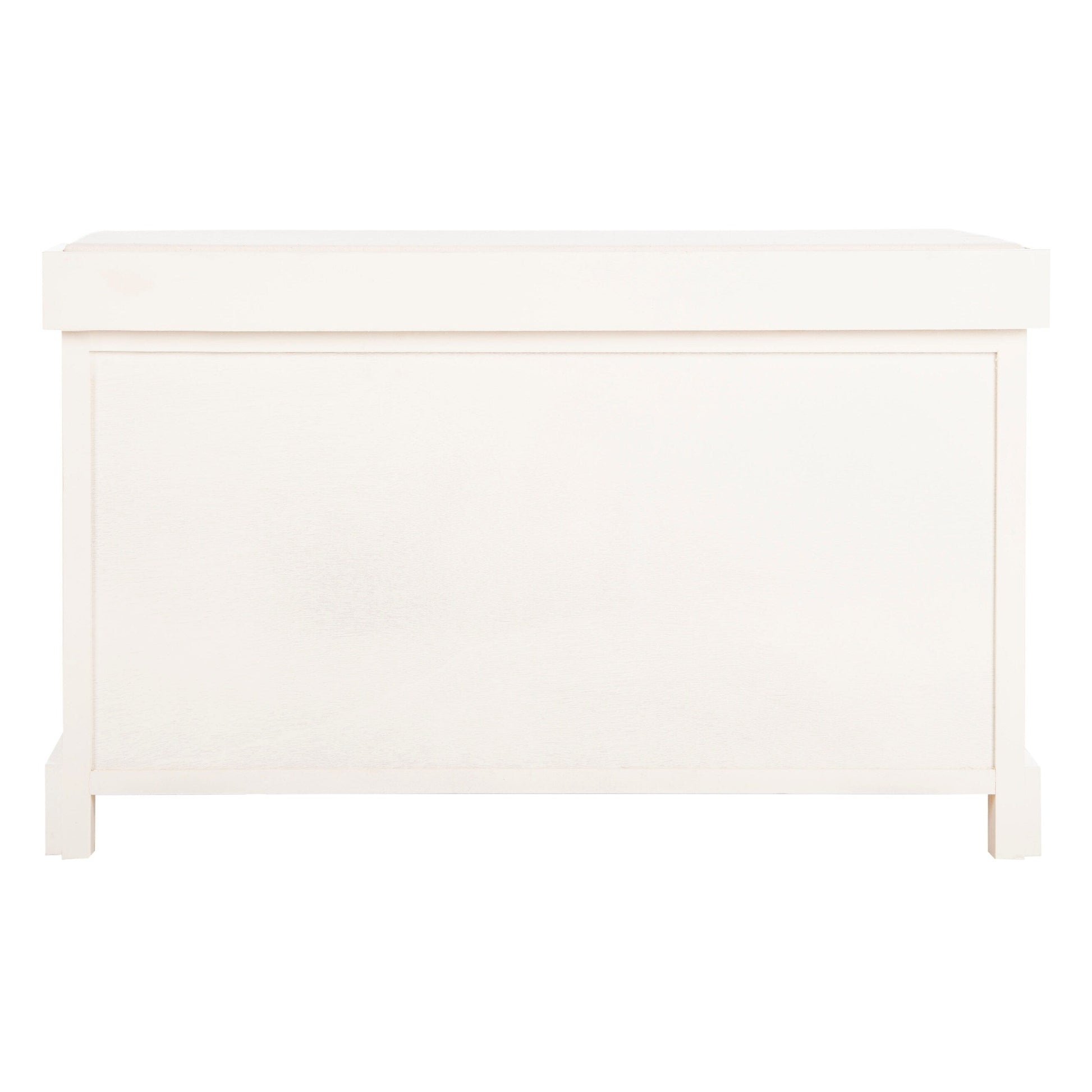 Sit back and relax. This charming storage bench with pine wood frame and linen upholstered seat is perfect for changing shoes in an entry hall, and its woven baskets can hold towels and other necessities in a master bath. A versatile piece in any room.