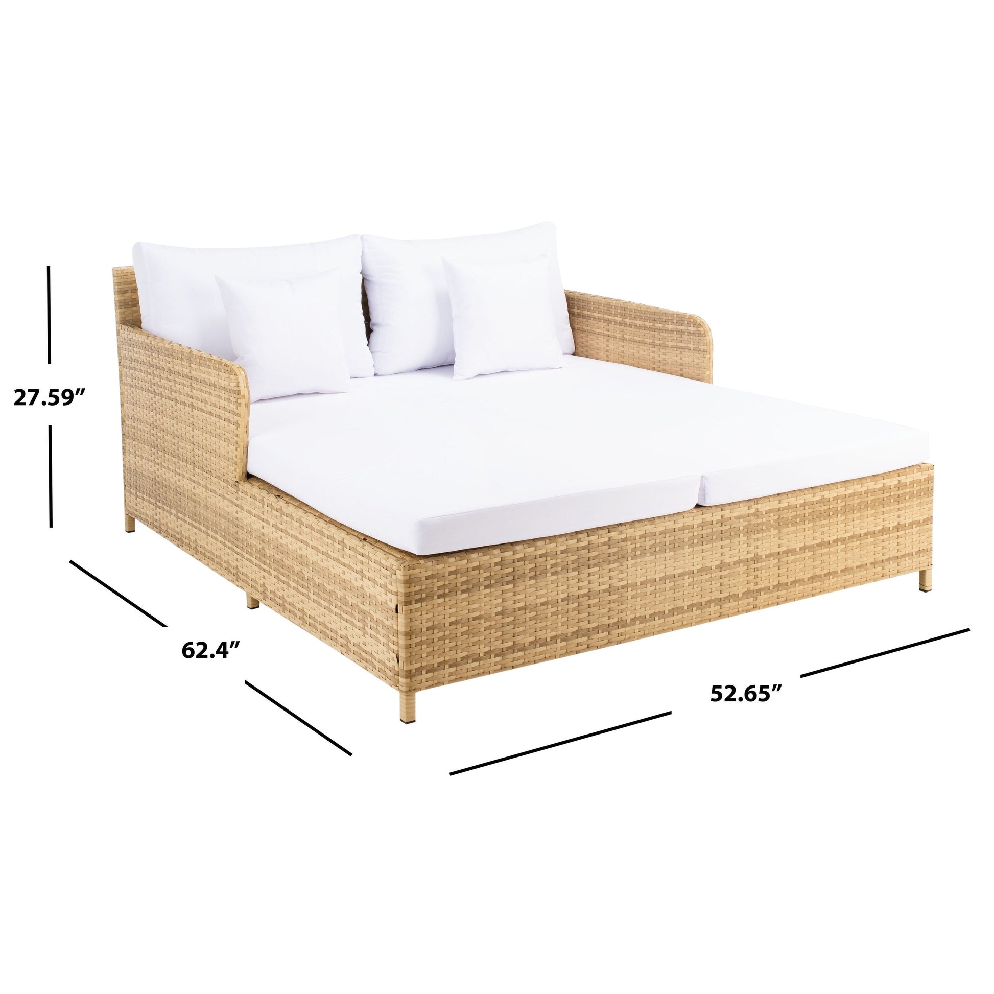 SAFAVIEH Outdoor Taniyah Wicker Daybed with Pillow & Cushions - 53W x 28D x 62H