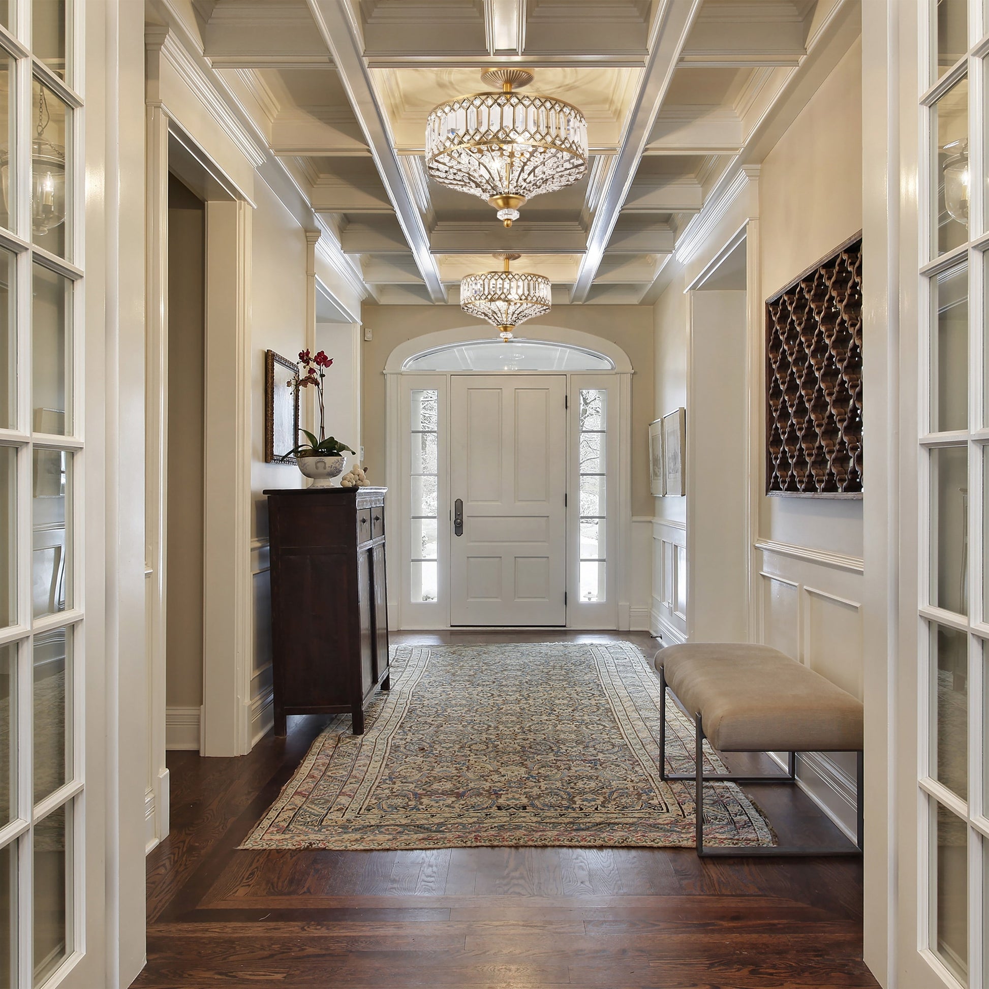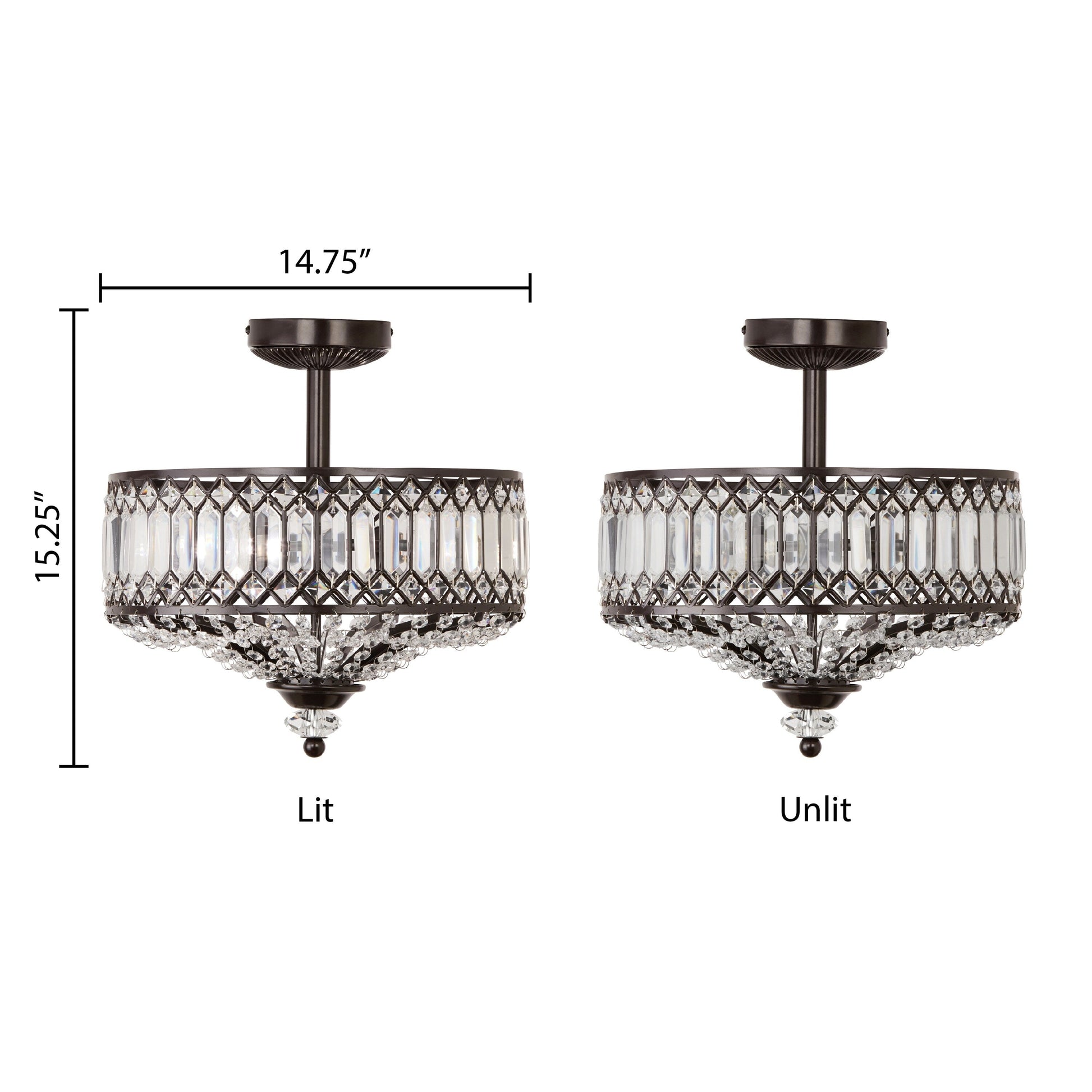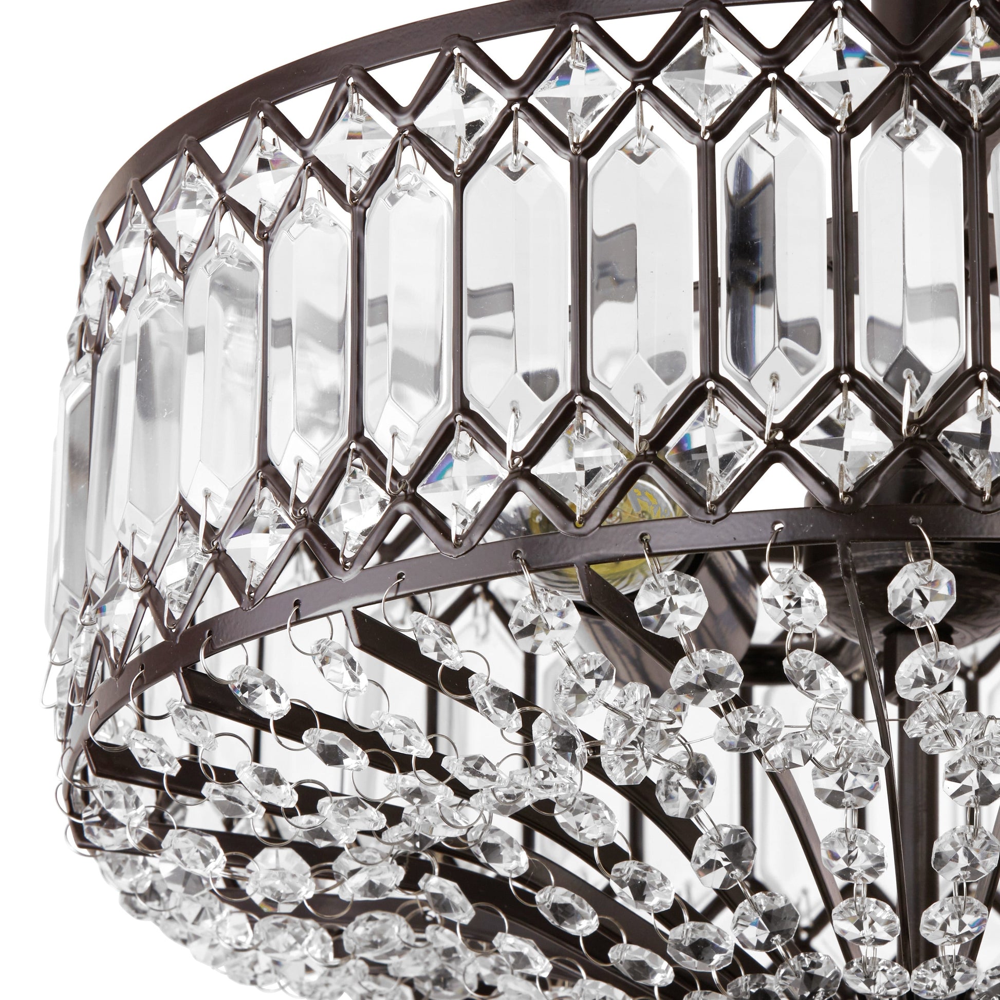 Update your home décor with this exquisite semi-flush lighting fixture from Silver Orchid. The Furey Bronze/Gold Tiered Glass Semi-flush Lighting Fixture features 350-plus clear glass accent pieces and additional K-9 crystal accents that enhance its glamorous style. The oil -rubbed bronze tone or gold-finish details and classic design make this fixture a sophisticated addition to your home.
