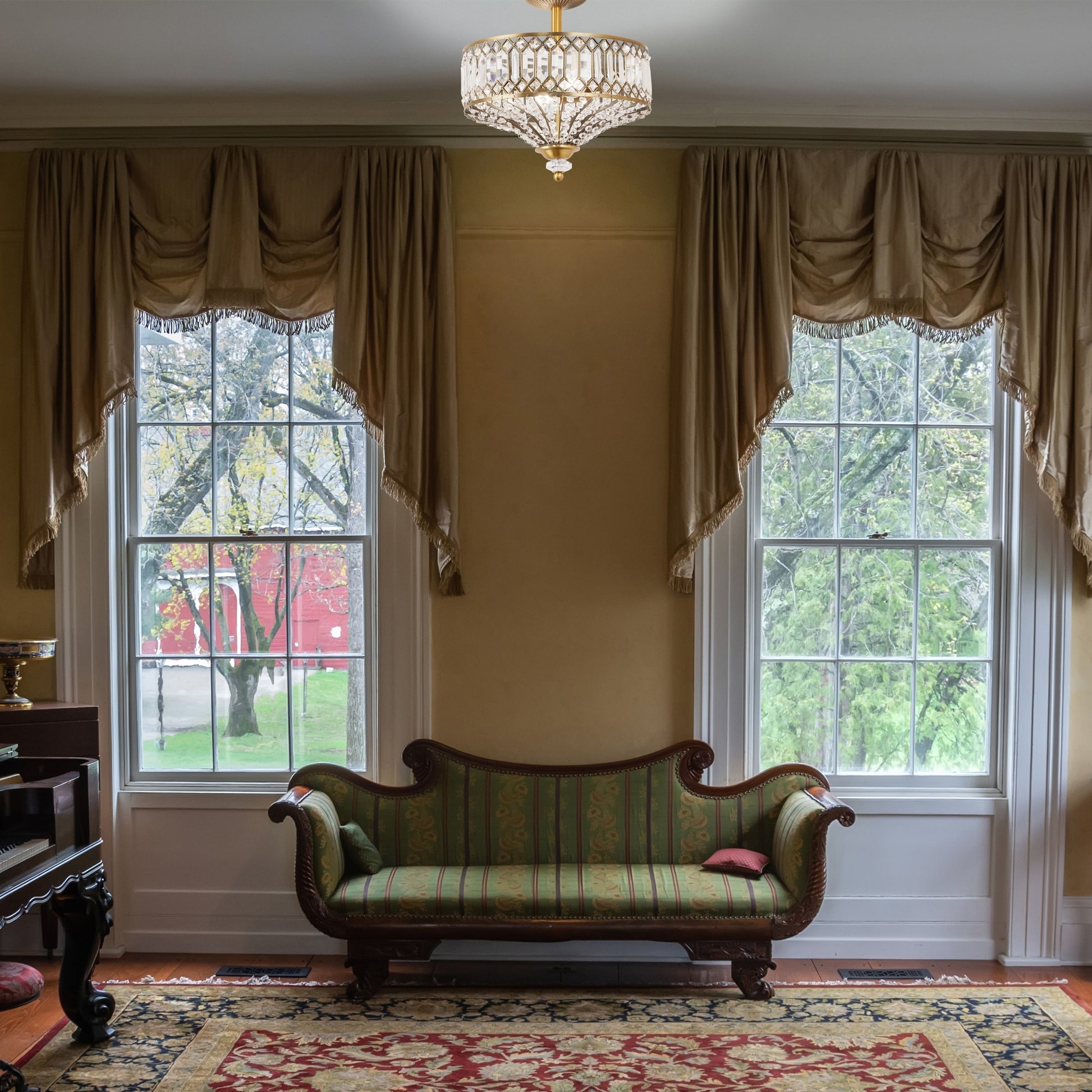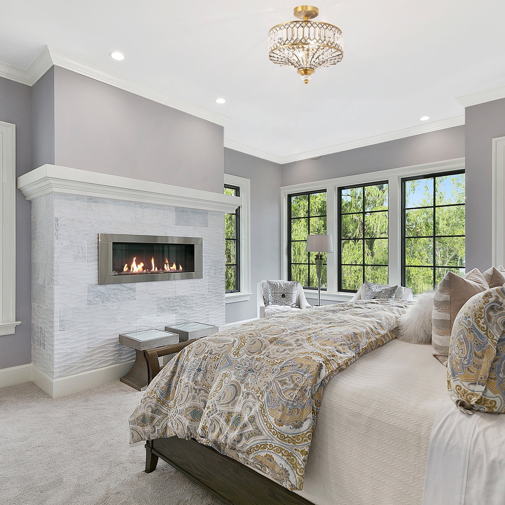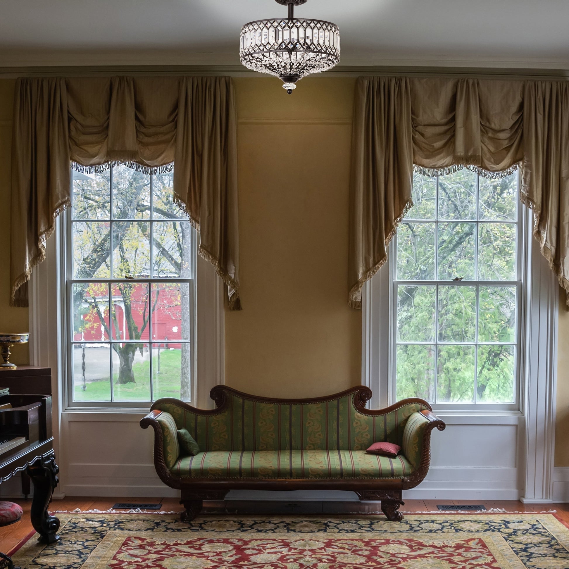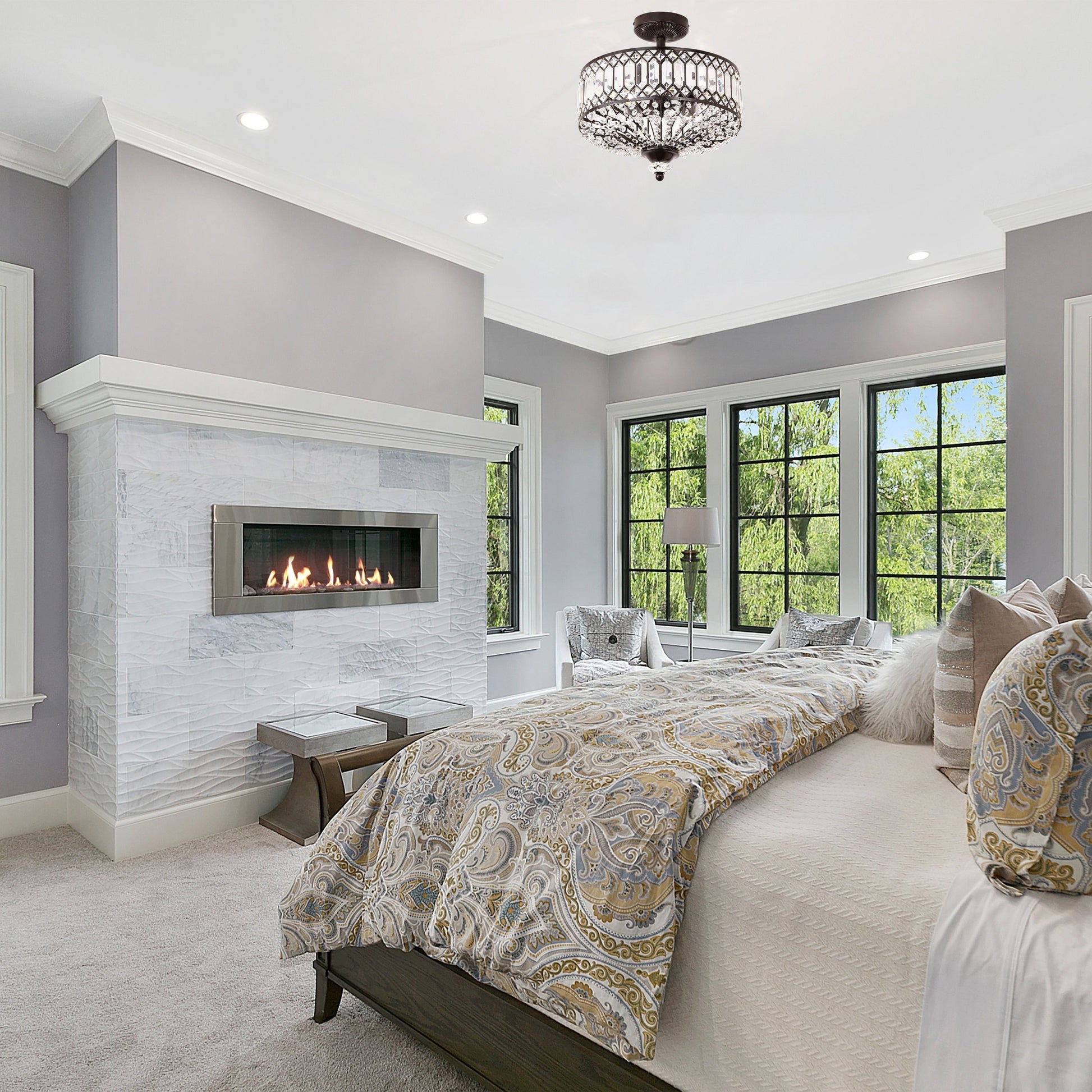 Update your home décor with this exquisite semi-flush lighting fixture from Silver Orchid. The Furey Bronze/Gold Tiered Glass Semi-flush Lighting Fixture features 350-plus clear glass accent pieces and additional K-9 crystal accents that enhance its glamorous style. The oil -rubbed bronze tone or gold-finish details and classic design make this fixture a sophisticated addition to your home.