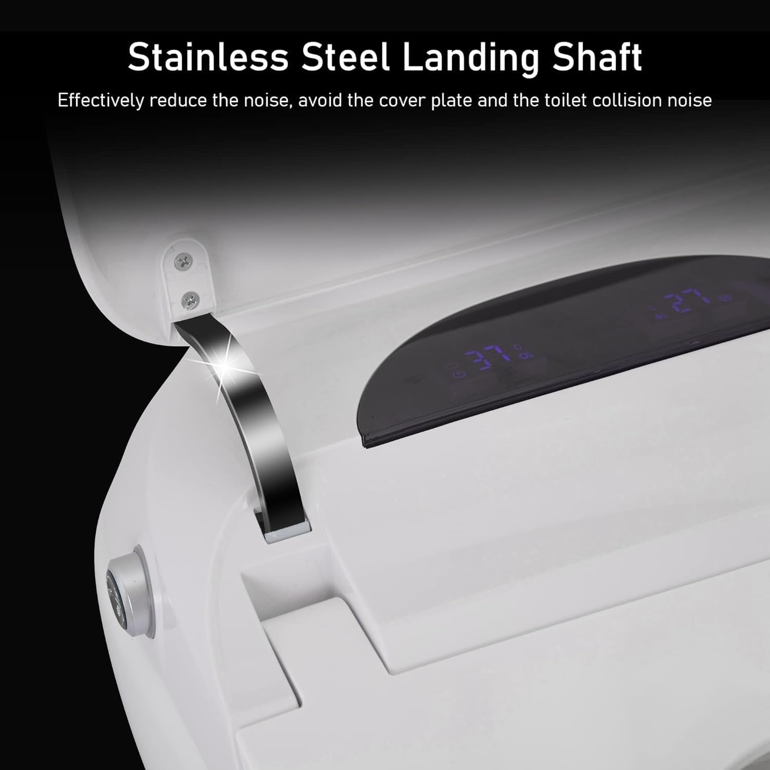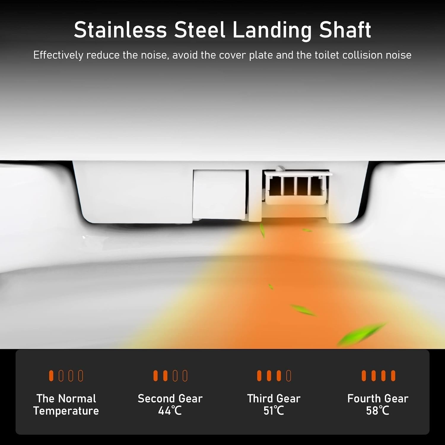 - 🚽 Cozy Heated Seat & Intuitive LED Display: Our smart toilet with heated seats allows you to adjust the temperature through a remote or side control knob, providing a warm and comfortable sitting experience. Stay informed with real-time seat and water temperature updates displayed on the LED screen, managed by a sensitive sensor.