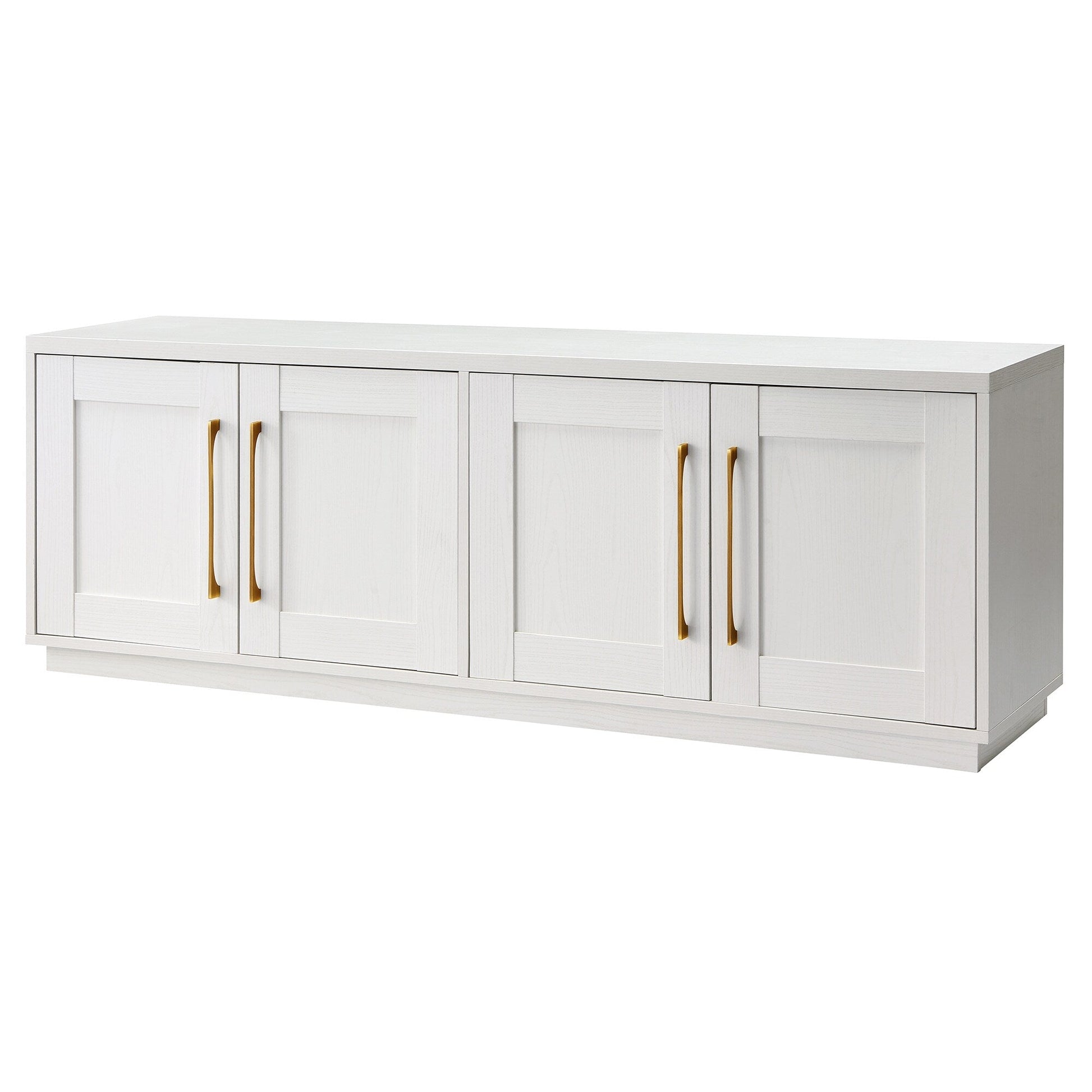- Features four doors with enclosed cabinets and 4 shelves for ample storage.
