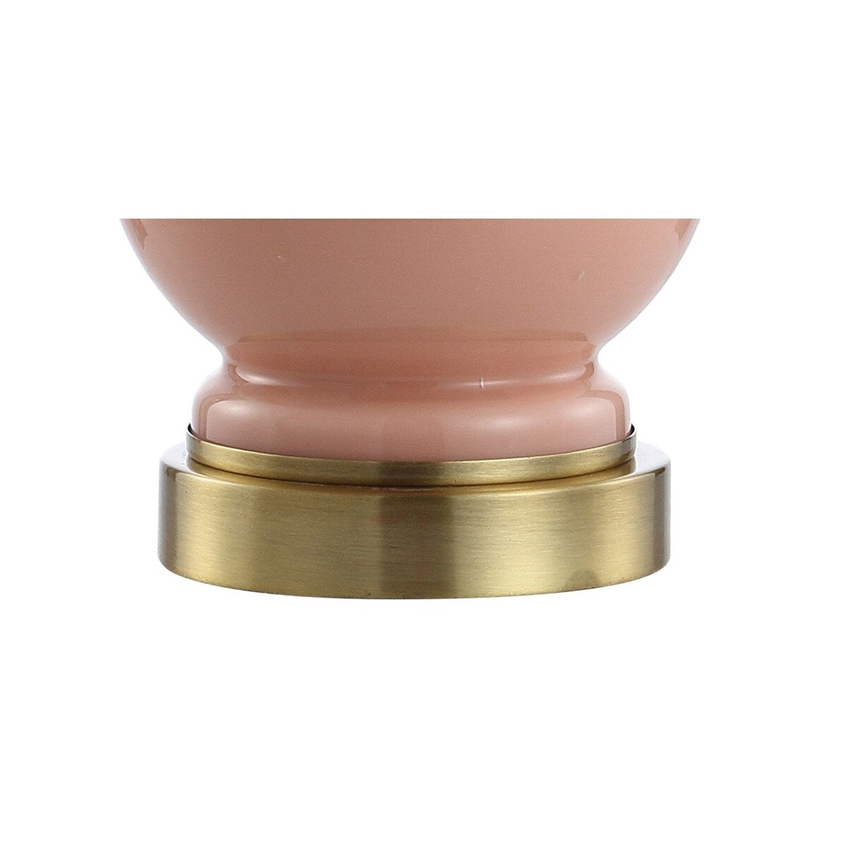 Elegantly simple and shaped like a Grecian vase, the Vermont 22' Glass/Metal LED Table Lamp Set by JONATHAN Y comes in a glossy white finish with brass fittings, a linen lampshade, and silk-wrapped cord. This lamp is carefully designed with components that enhance its overall appeal, making it a must-have for any modern home.