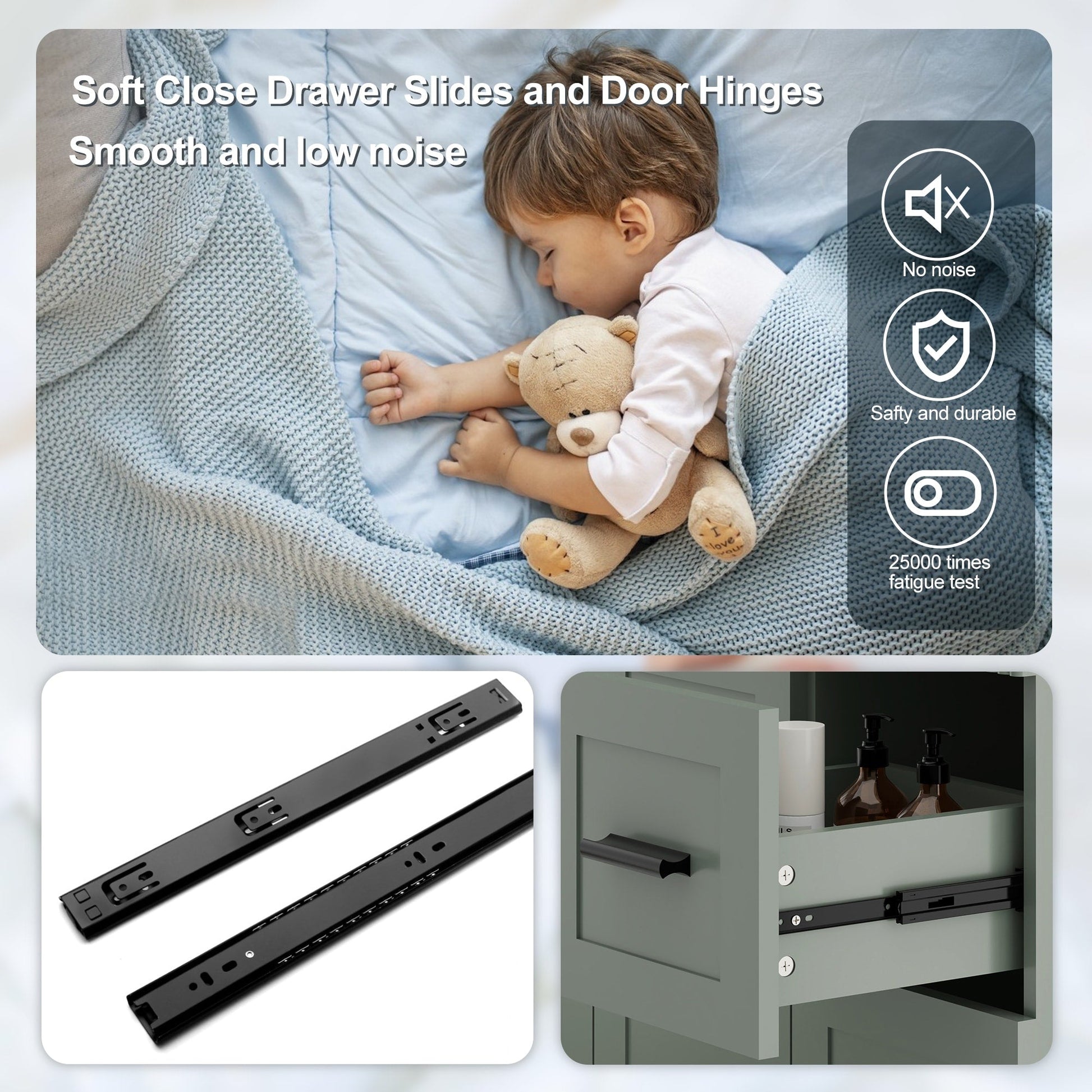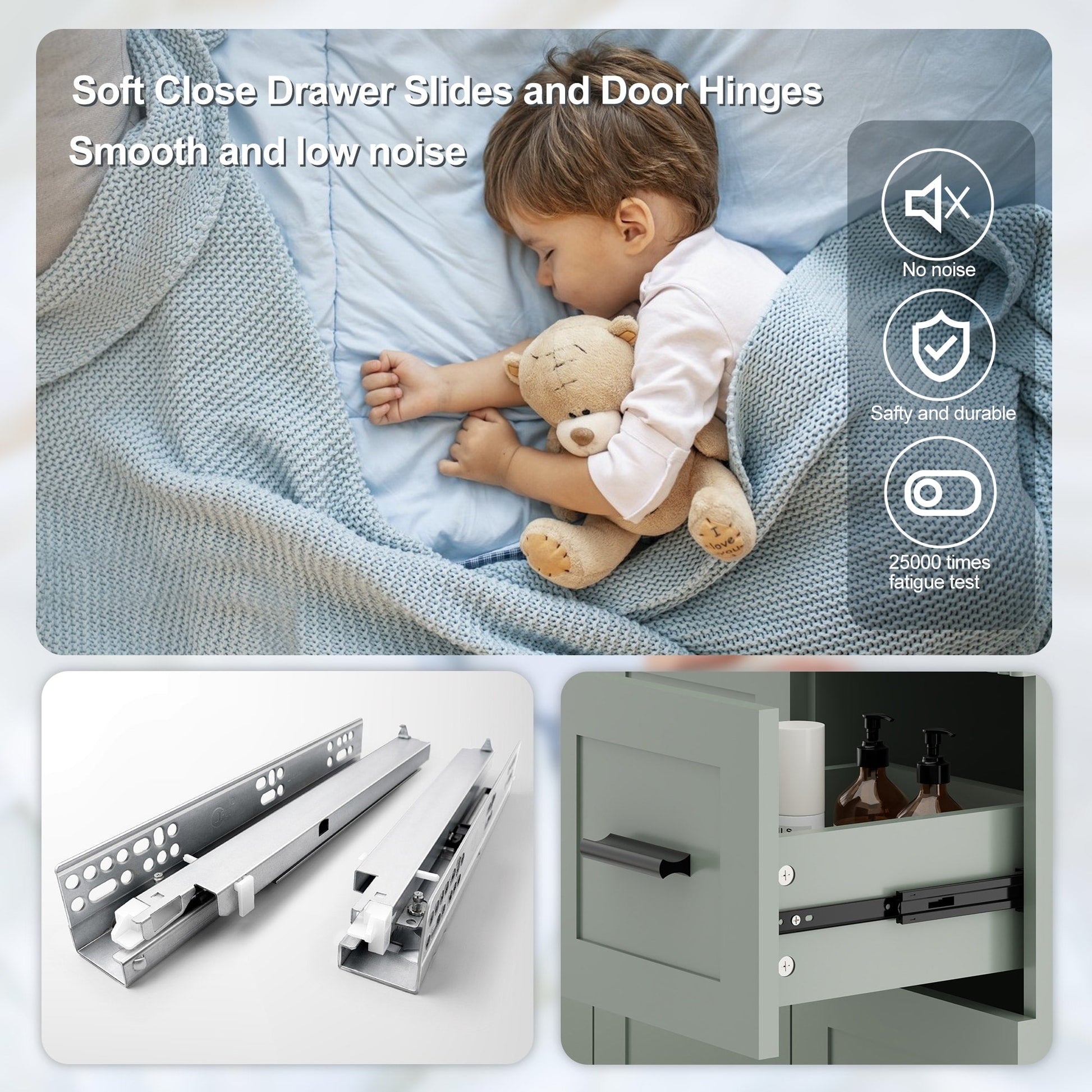 - Premium Soft-Close Drawers: Stainless steel undermount slides (25,000-cycle tested) ensure silent, smooth operation. 2 spacious drawers + adjustable shelf organize toiletries effortlessly.