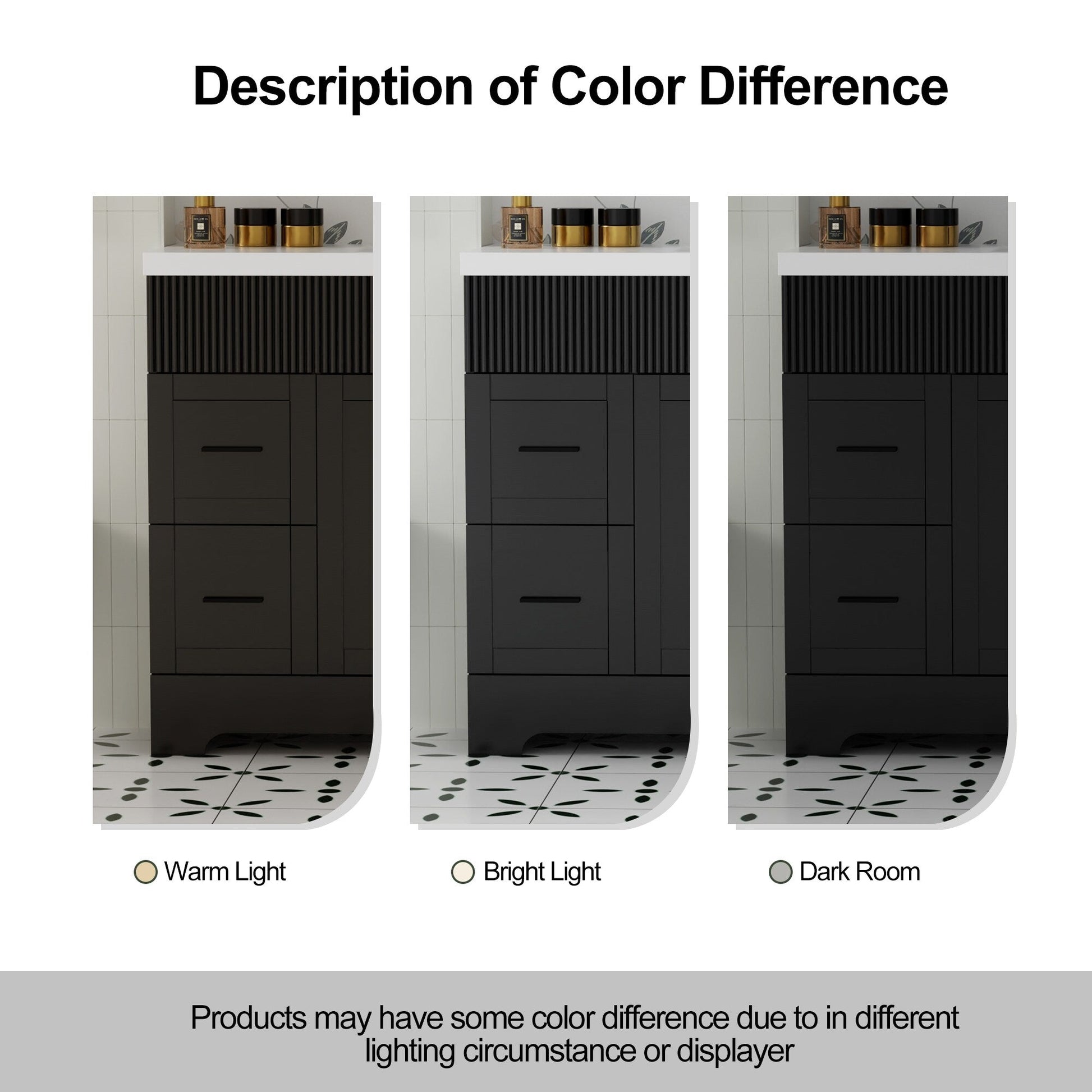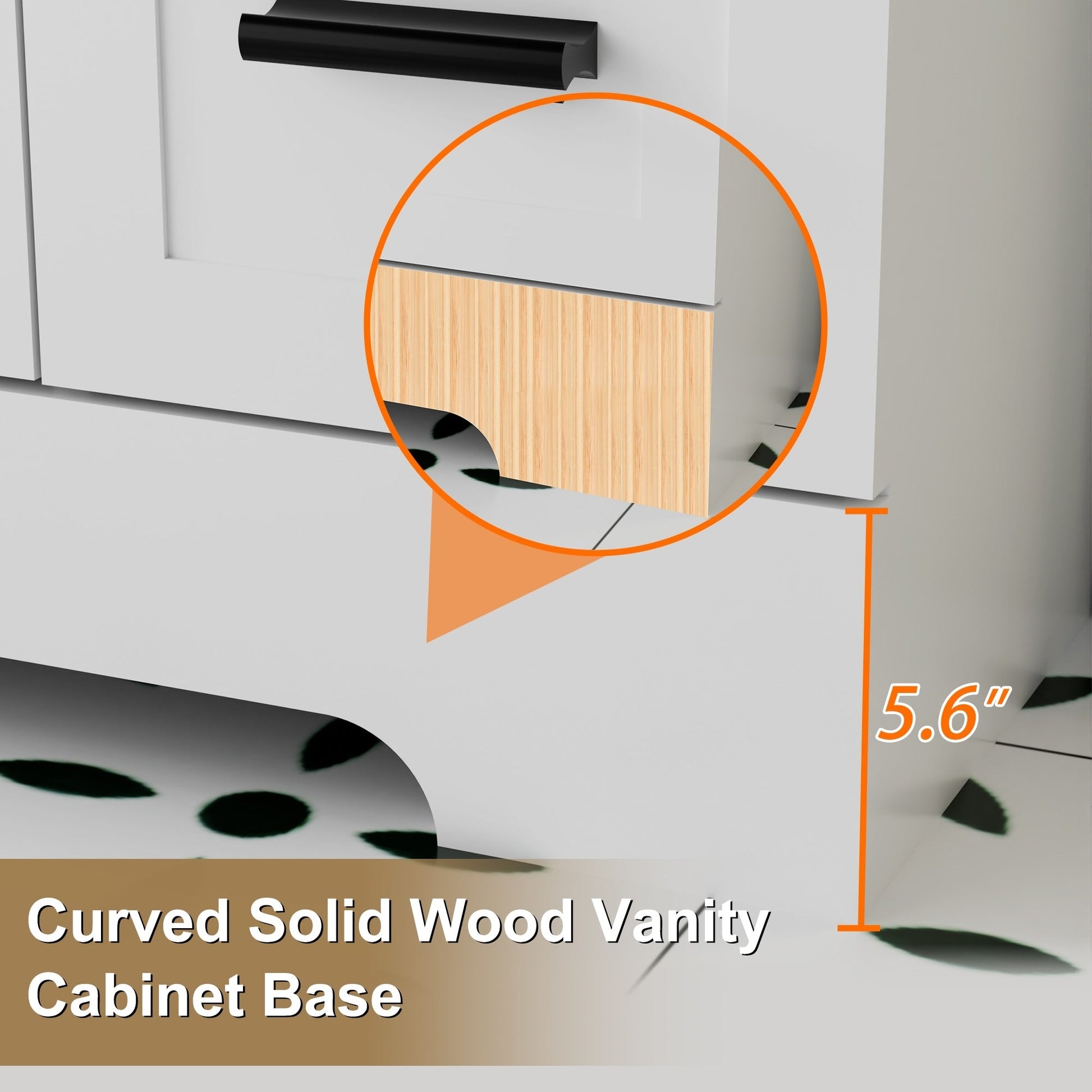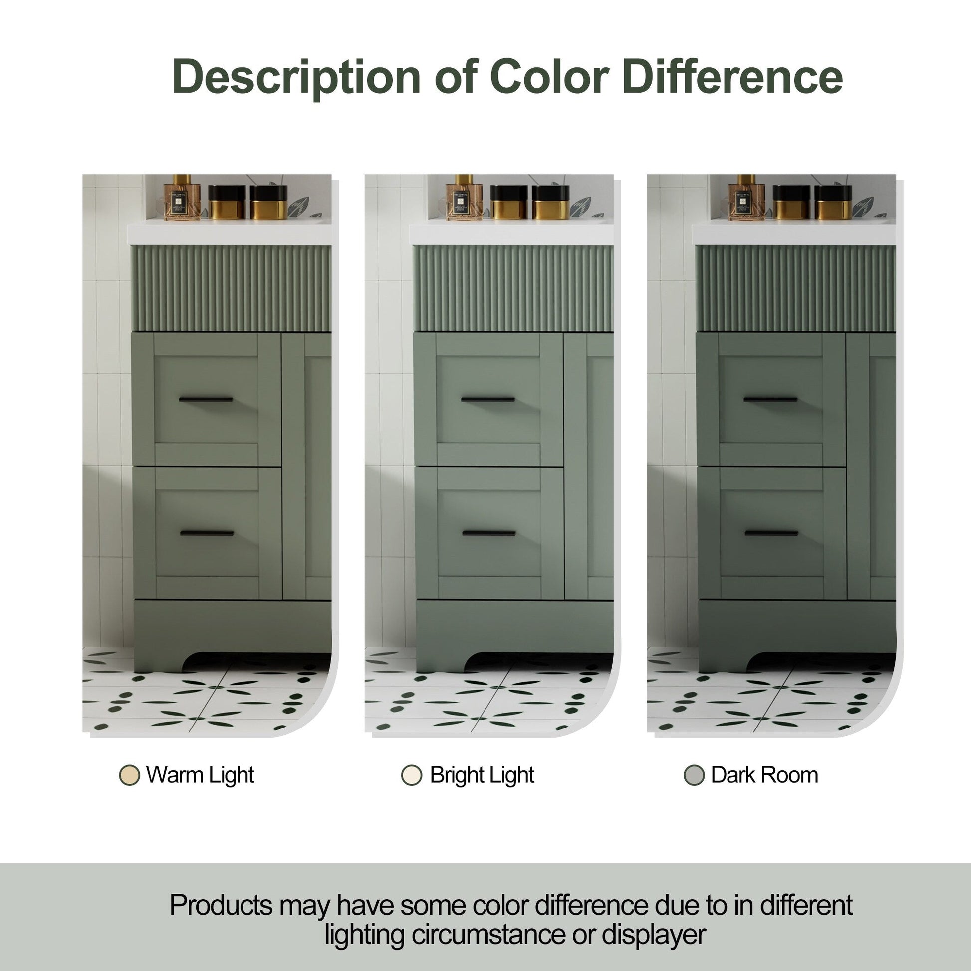 Upgrade your bathroom with this complete vanity set featuring eye-catching wavy line detailing. Available in 3 versatile sizes (30', 36', 48') and 3 on-trend colors (White, Green, Black), this freestanding vanity delivers contemporary style with exceptional storage. Premium wood construction ensures durability, while the included ceramic sink (30'/36') and lightweight SMC resin sink (48') offers easy maintenance.