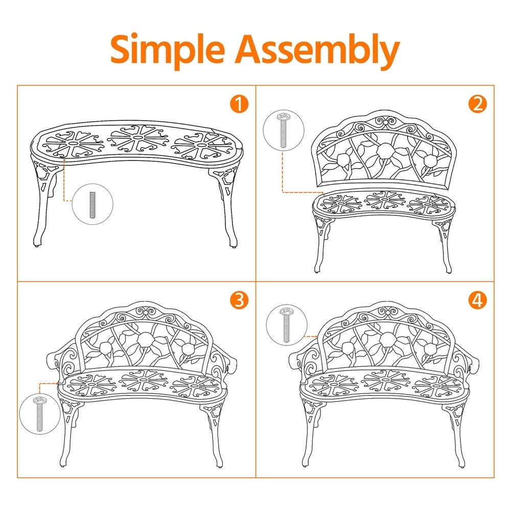 - Safe and User-Friendly: With a weight capacity of 227 kg/ 500 lb, this outdoor metal bench is sturdy and reliable. The edge-free design ensures safe sitting, with all possible sharp edges rounded for user comfort.