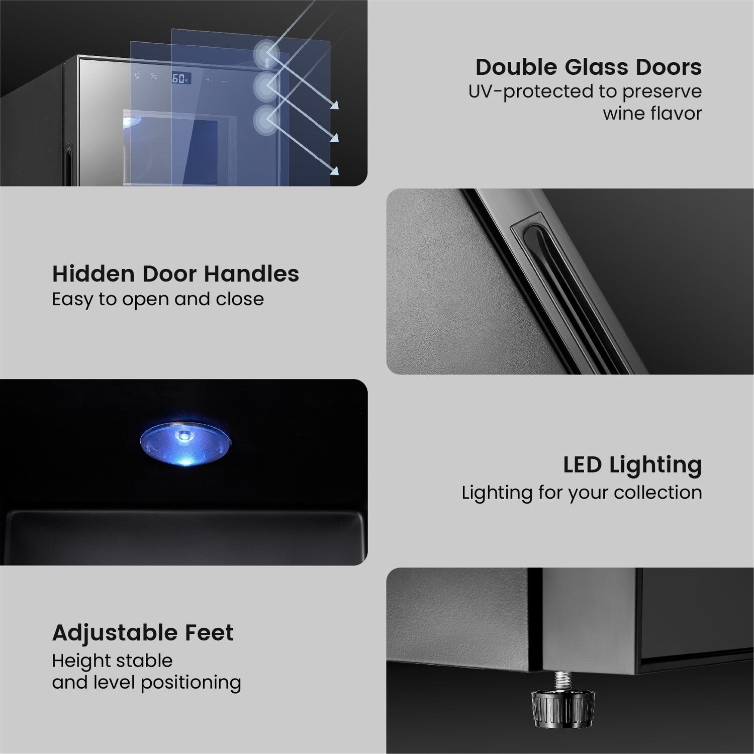 • Advanced Preservation: Equipped with an internal fan for even cooling distribution and humidity control, ensuring optimal wine preservation for enhanced flavors and aromas.