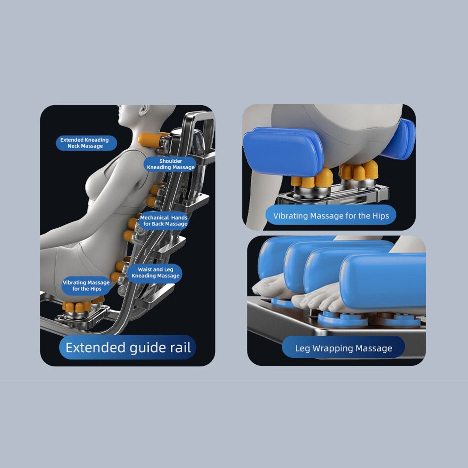 This massage chair simulates the zero-gravity experience, placing your heart and knees in perfect alignment. This position effectively reduces heart strain, promotes circulation, and relieves spinal pressure—helping your body reach deep relaxation.